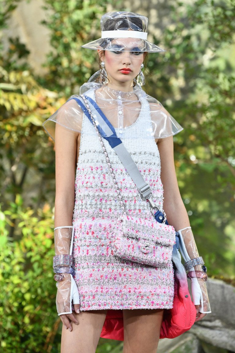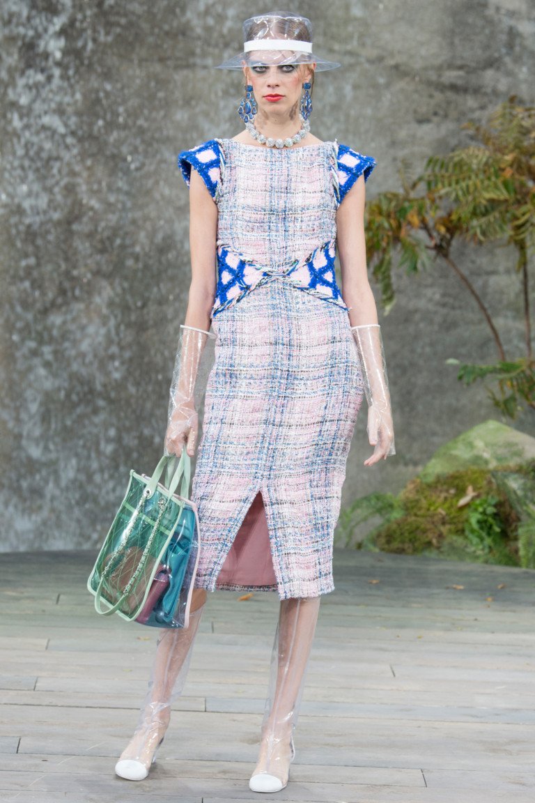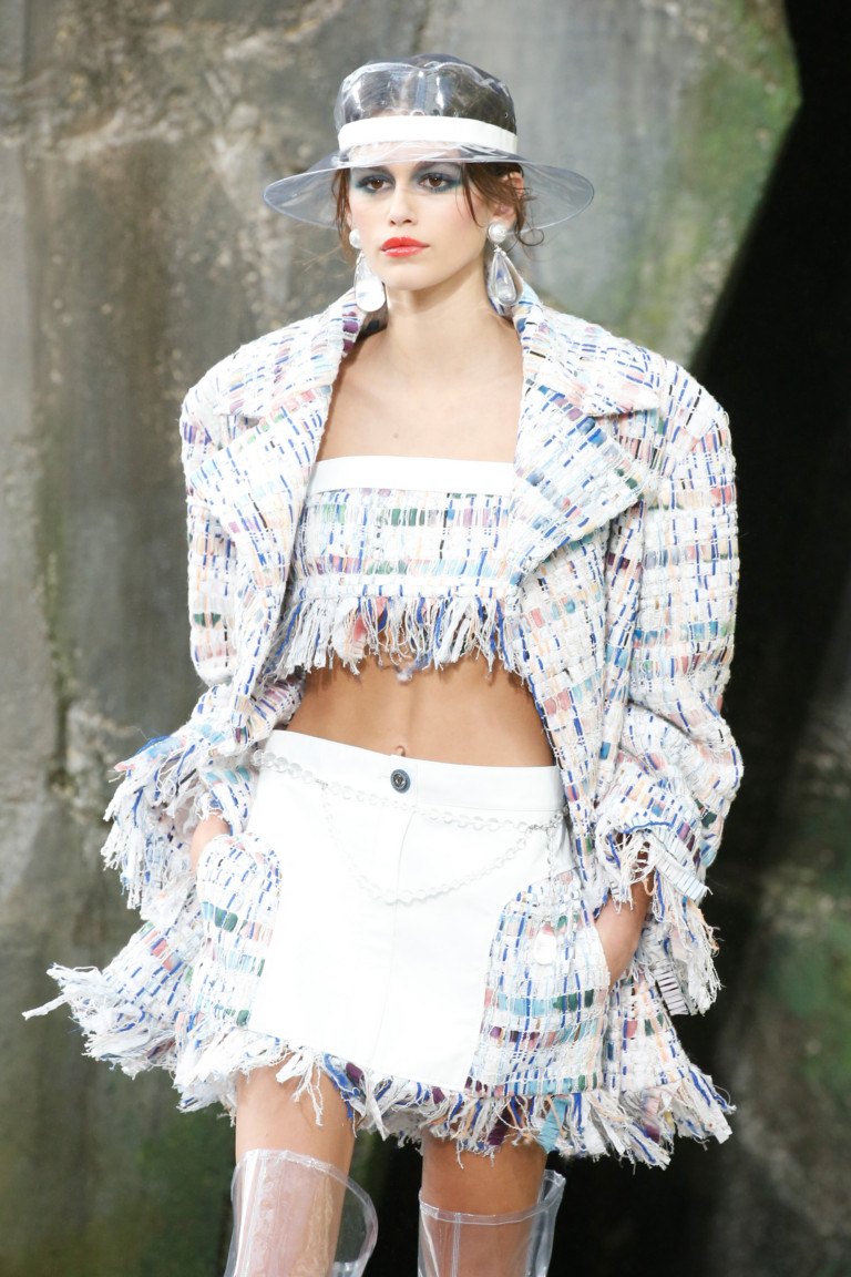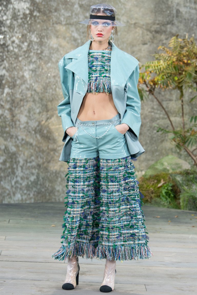 La collection estivale de Chanel a ravi les fashionistas au look élégant et tendance. Il contient tout, d'une veste classique à une minijupe. Entre autres choses, toutes les images sont en quelque sorte liées au thème du processus sans fin hypnotisant du flux d’eau dans les cascades naturelles, qui reliait davantage l’esprit de la collection Chanel et la beauté naturelle. En outre, la collection est dominée par les classiques, où le noir et le blanc sont entrelacés, le tweed et la transparence des accessoires mettant en valeur la beauté.