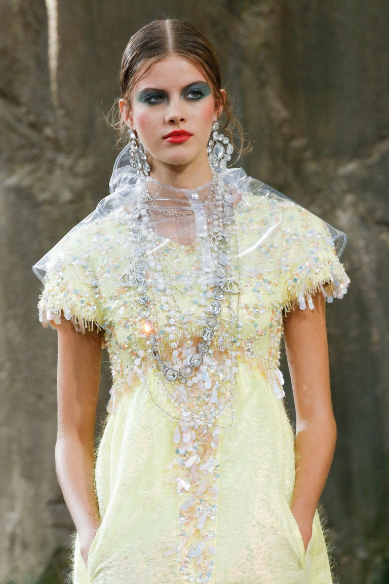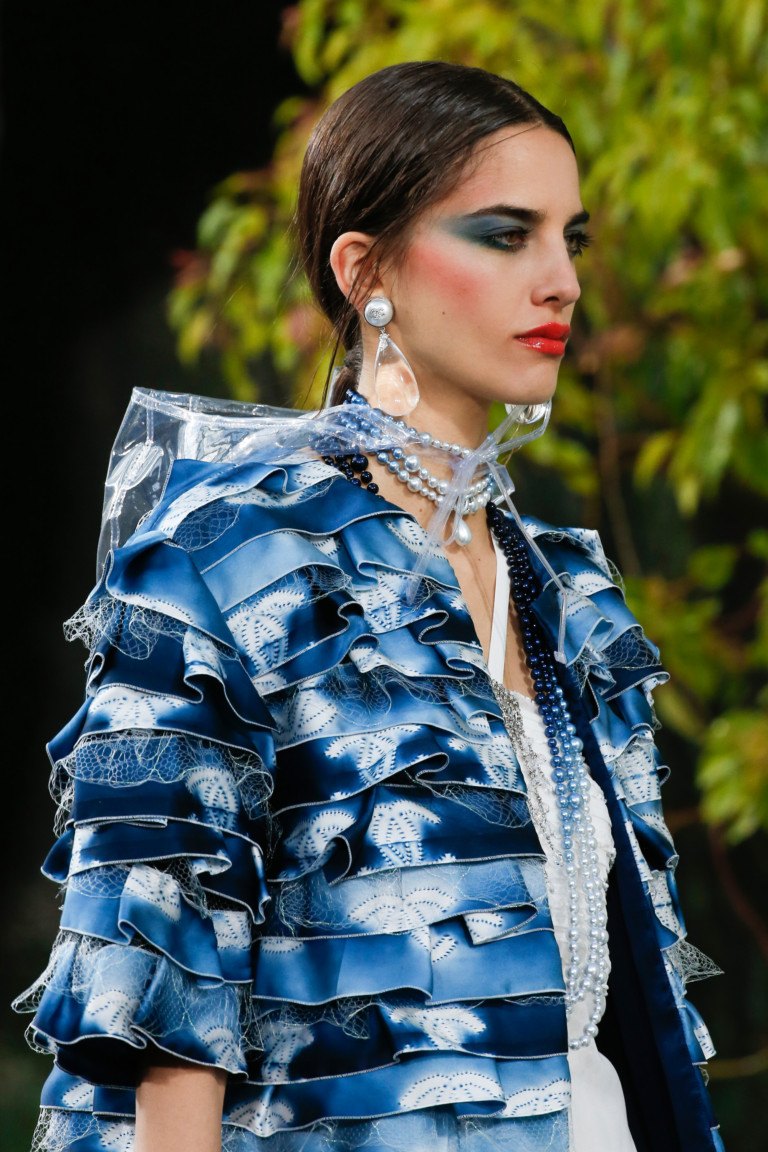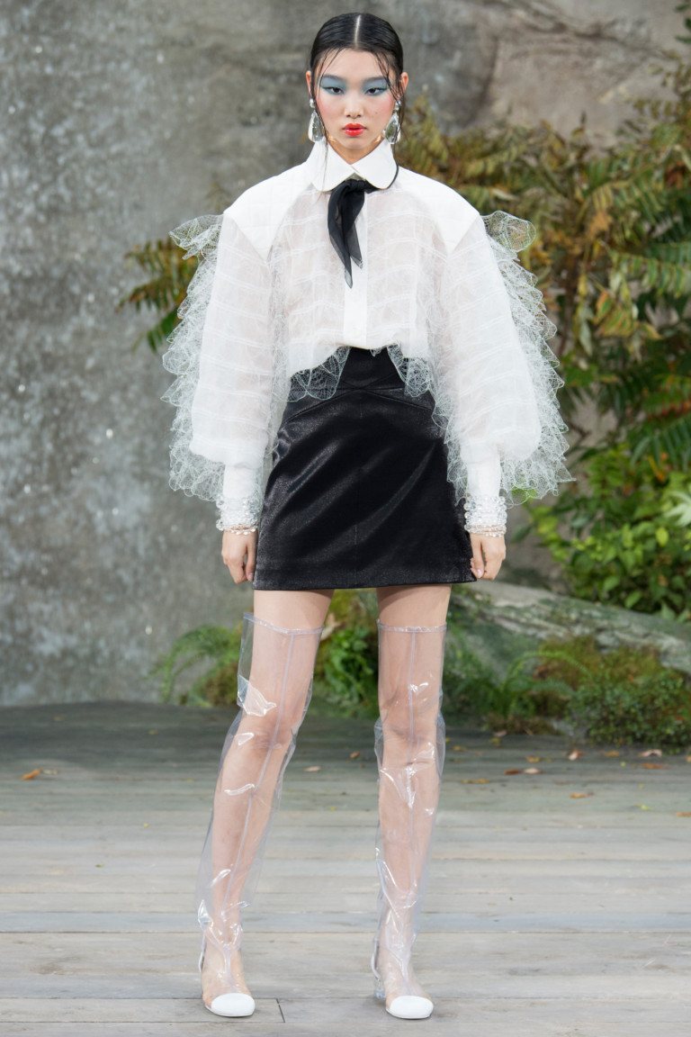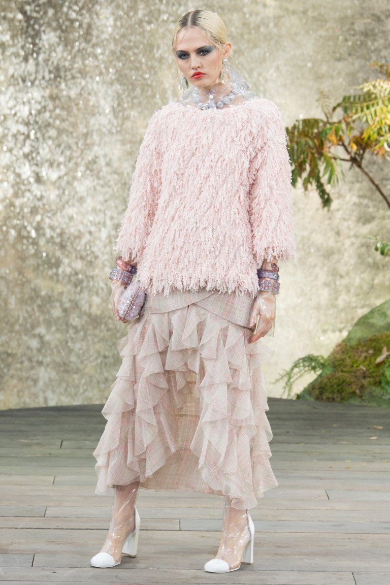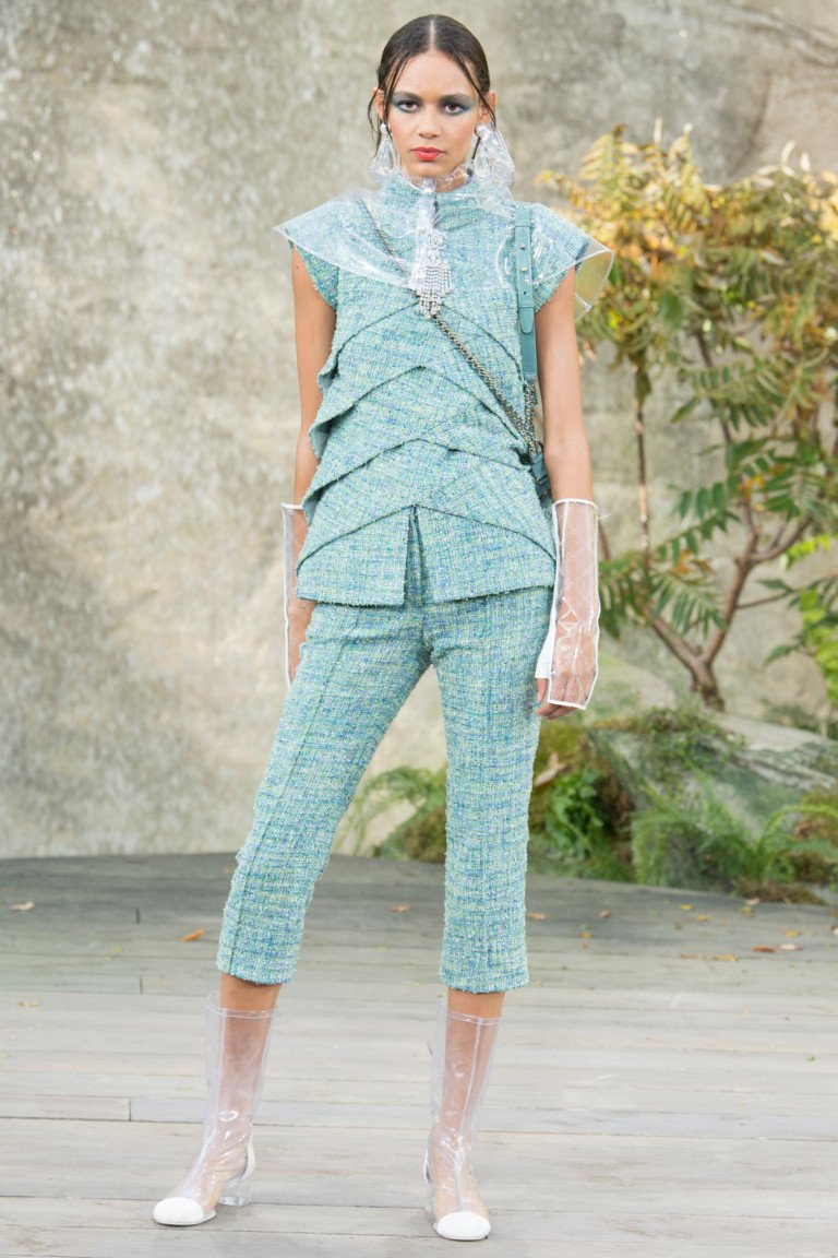 La collection estivale de Chanel a ravi les fashionistas au look élégant et tendance. Il contient tout, d'une veste classique à une minijupe. Entre autres choses, toutes les images sont en quelque sorte liées au thème du processus sans fin hypnotisant du flux d’eau dans les cascades naturelles, qui reliait davantage l’esprit de la collection Chanel et la beauté naturelle. En outre, la collection est dominée par les classiques, où le noir et le blanc sont entrelacés, le tweed et la transparence des accessoires mettant en valeur la beauté.