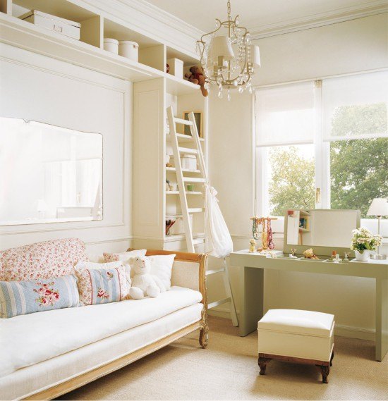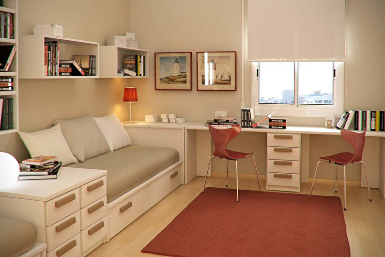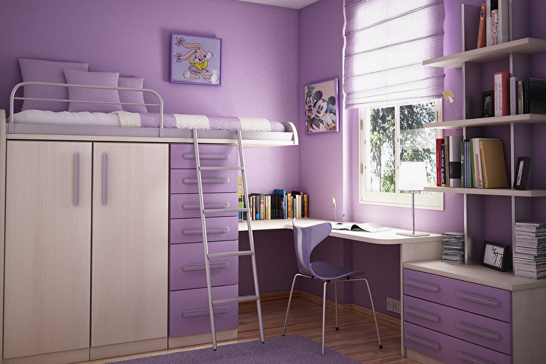 Lorsque vous organisez une chambre pour deux sœurs, vous devriez également regarder les meubles du transformateur. Cela peut inclure des armoires encastrées, des lits pliants, des tables pliantes, etc. Cela permettra non seulement de gagner de l'espace, mais également d'organiser de manière optimale l'espace dans la pièce.