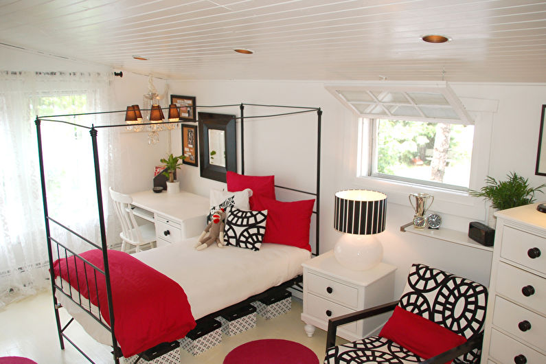 Une telle direction peut être le choix d'une fille plus âgée qui apprécie l'esthétique et la concision. Ce style s’intégrera parfaitement dans une pièce modeste et permettra d’utiliser les mètres carrés modestes le plus efficacement possible. Le mobilier est généralement utilisé de manière modulaire et fermé autant que possible.