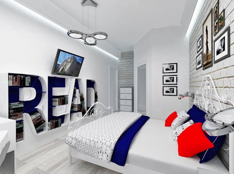 La chambre doit avoir un lit, une table et une armoire. Mais si les dimensions de la chambre d'enfant le permettent, vous pouvez toujours y placer un petit canapé, des poufs, une table de chevet pour les petites choses «secrètes», une télévision, etc.