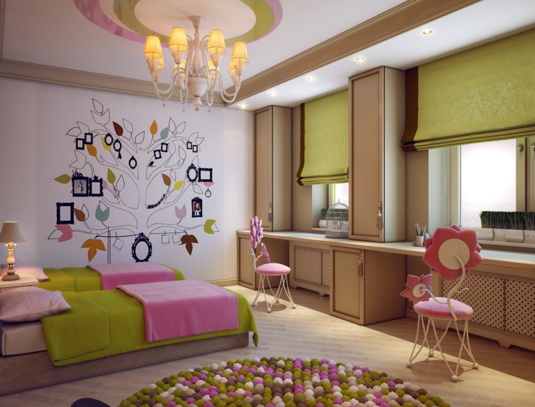 C'est doublement difficile pour les parents qui élèvent deux filles adolescentes à la fois. Après tout, les filles qui vivent sur la même place peuvent être des rivales. Par conséquent, lors de l'aménagement d'une salle, il est important de prendre en compte toutes les nuances pouvant conduire à des situations controversées.