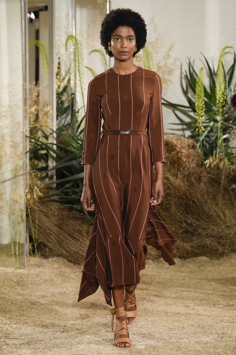 L'un des avantages d'une tenue brune avec une impression, c'est que la robe se déchire complètement et ajoute visuellement du volume là où elle manque. Par conséquent, choisissez une robe marron avec la disposition d'impression «correcte». La robe marron à pois est une tendance de la mode moderne. Mais les motifs floraux sont également en demande.
