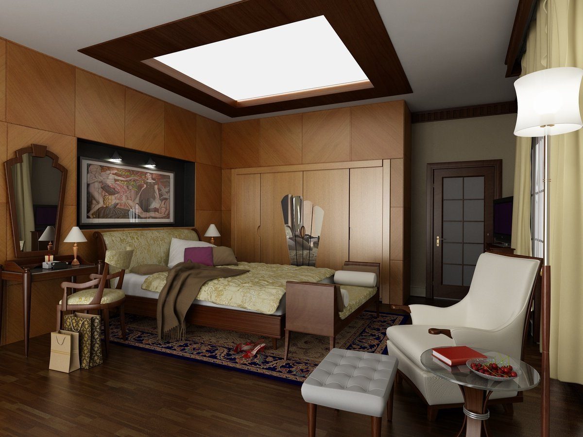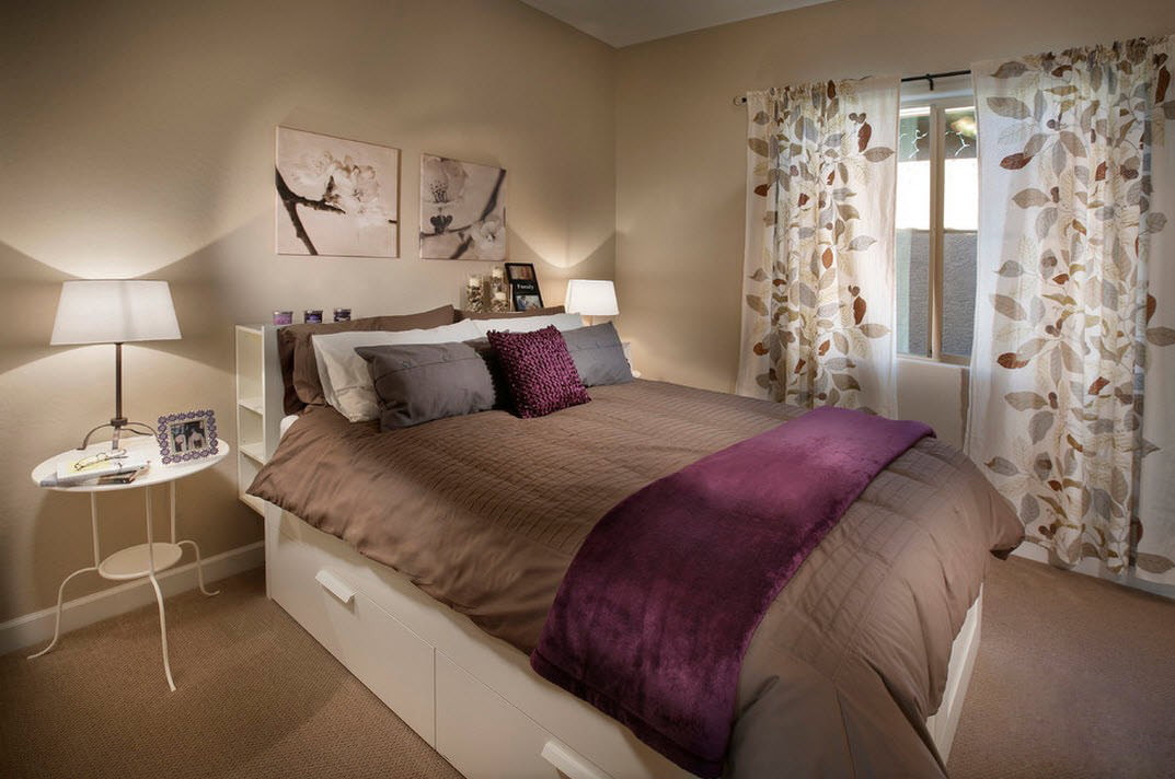 Dans la chambre à coucher, cette couleur contribuera à une détente complète et à des vacances reposantes. Une petite pièce, entièrement décorée avec des tons différents de la même couleur, est incroyablement élégante. Les draps blancs et un plafond dilueront le brun.
