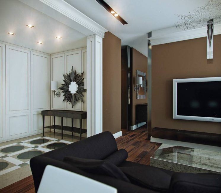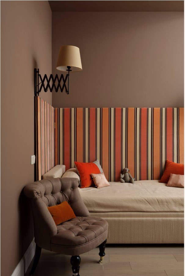 La couleur marron peut être utilisée dans n’importe quelle pièce d’une maison ou d’un appartement. La seule règle est que plus la surface de la pièce est petite, plus les nuances sont lumineuses.