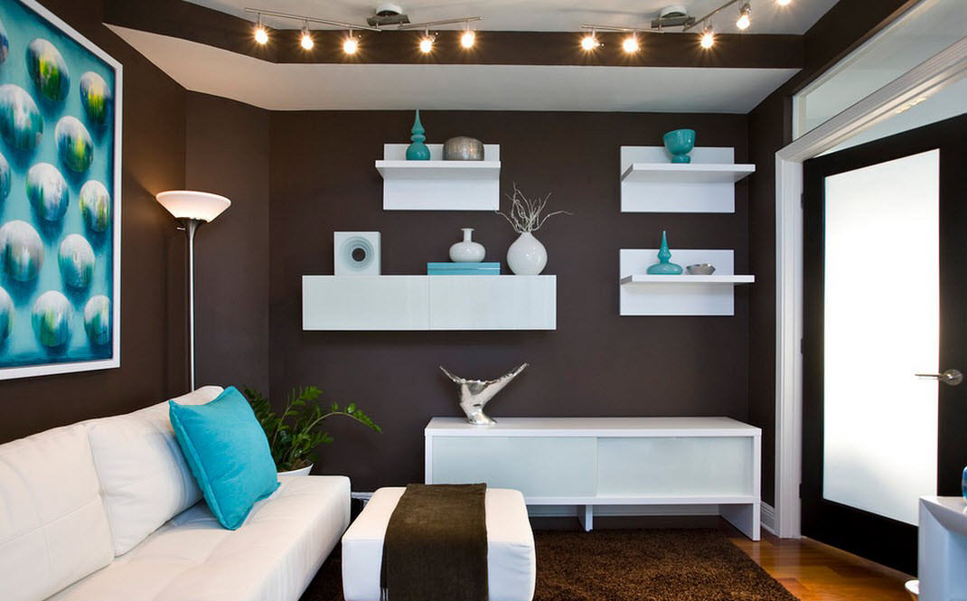 Dans la plus grande pièce de la maison, les teintes brunes peuvent être appliquées en quantité illimitée. L'essentiel est de choisir le bon ton, de déterminer sa combinaison avec divers éléments de la pièce. Sur un fond marron des murs, les meubles de la même teinte deviendront complètement invisibles.