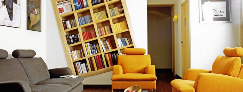 Trouver le bon endroit dans un appartement en ville est plus difficile. Par conséquent, les solutions non standard sont le plus souvent choisies ici. Les étagères peuvent être intégrées dans des canapés, des appuis de fenêtre ou dans de petits supports qui seront placés dans différentes pièces.
