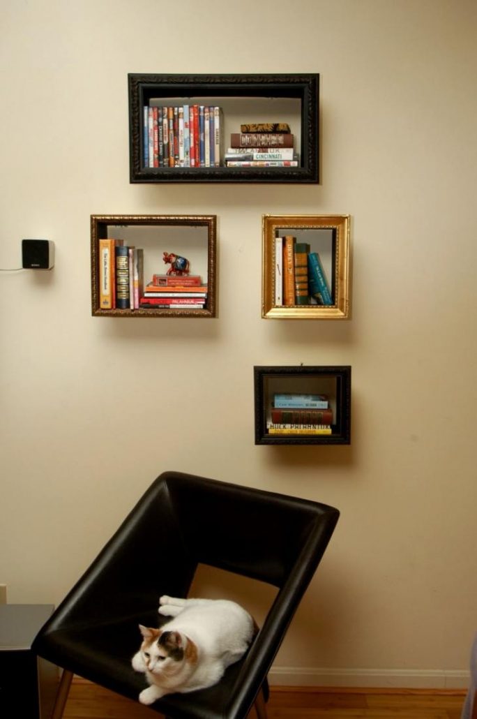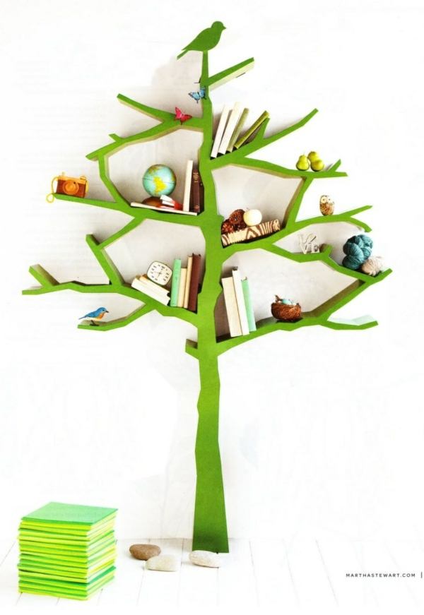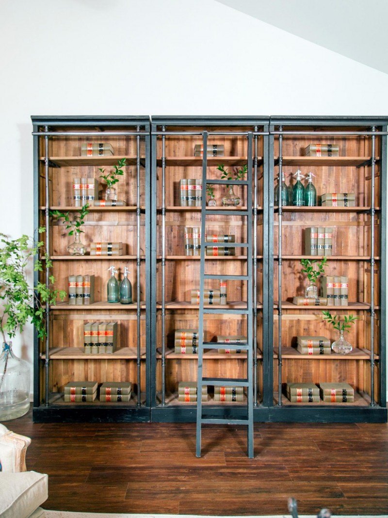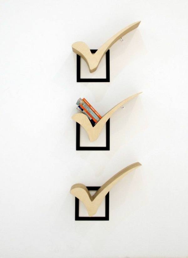 Une fois que le revêtement protecteur a séché, vous pouvez commencer à assembler la bibliothèque. Comme matériau pour sa production peut être appliqué: bois naturel, MDF, panneaux de particules, panneaux de parquet ou stratifiés. En utilisant votre imagination, vous pouvez créer des étagères spectaculaires et originales de vos propres mains.