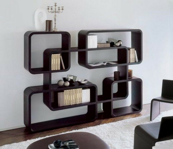 Si nous pouvions acheter plus tôt une bibliothèque de forme rectangulaire standard, leur choix est incroyable aujourd'hui. Dans le même temps, non seulement la forme peut être différente, mais également les types de fixation.