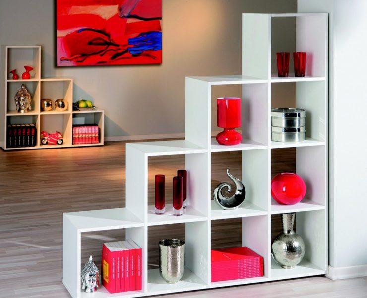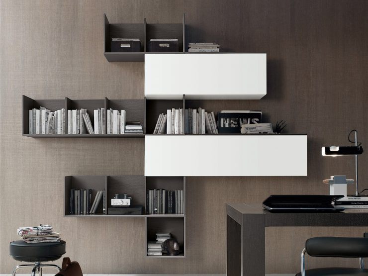 Les étagères sont murales, qui sont montées au mur ou au sol, situées au sol près du mur. Les modèles de sol diffèrent par leurs dimensions, ils sont donc généralement utilisés dans des pièces de grande surface. Ils sont également utilisés pour zoner la pièce. Leur face avant est ouverte ou fermée. Leur forme traditionnelle est rectangulaire. Cette conception comporte un ou plusieurs éléments avec différentes options pour placer des livres.