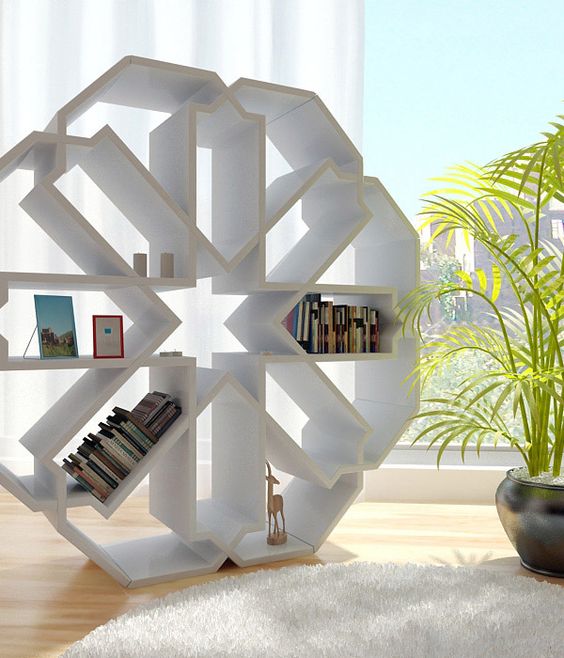 Des étagères au look inhabituel mais très impressionnant, dont le dessin ressemble à un nid d'abeille, répètent les contours d'un animal ou de lettres.