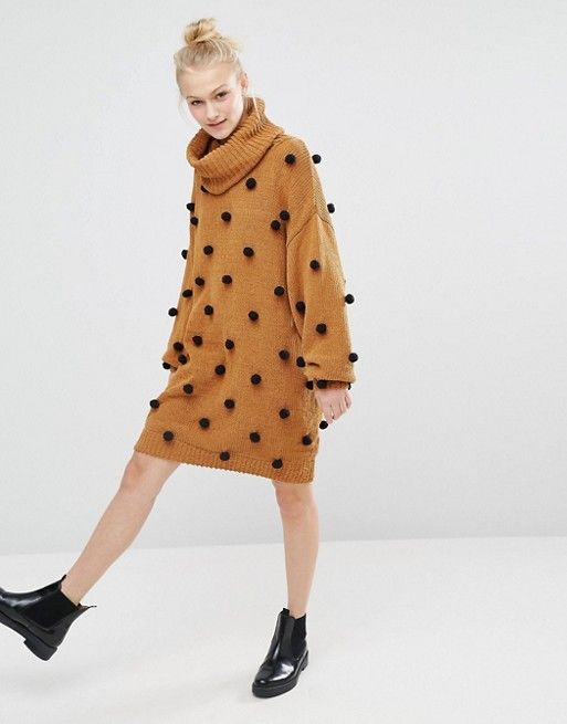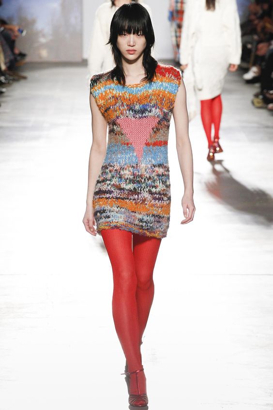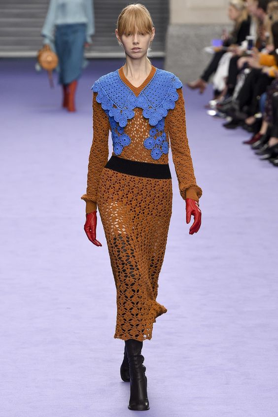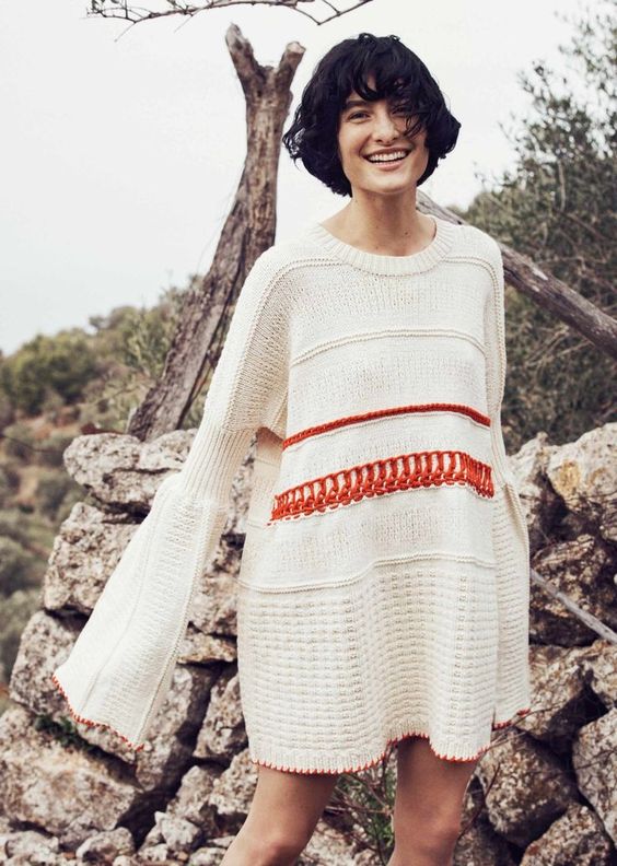 Dans la période automne-hiver, une telle robe ne peut tout simplement pas faire. Au sommet de la popularité sera des robes tricotées moulantes sans garniture inutile. L'accent est mis sur une grande boucle et des motifs originaux. Les couleurs réelles seront le chocolat, le jaune, le rouge, le sable et la moutarde.