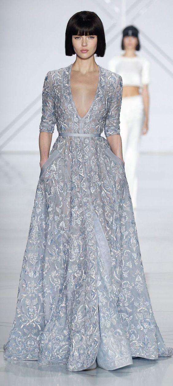 Voulez-vous souligner votre personnalité? Choisissez des robes de soirée classiques sur le sol. Ceux-ci seront populaires dans la nouvelle saison automne-hiver. Des robes de tissus fluides de couleurs noir, bleu foncé, blanc neige et beige seront pertinentes. Un accent supplémentaire est mis sur les ceintures brillantes, les inserts translucides et les rayures en forme de fleurs.