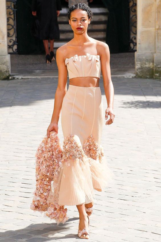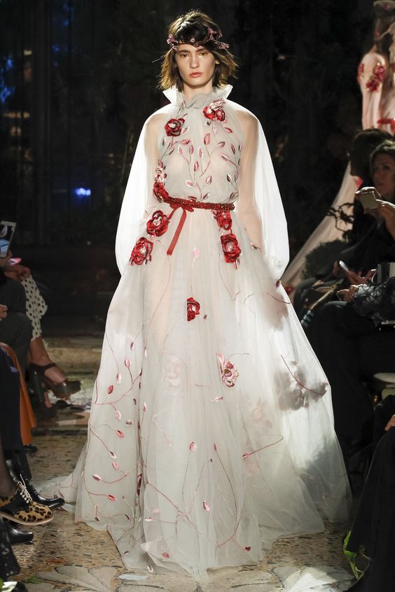 En outre, la fleuristerie va de saison en saison. Grâce aux arrangements floraux, même la robe la plus simple peut être rendue délicate et romantique. Les motifs floraux sont exprimés en relief, en applique ou en broderie.