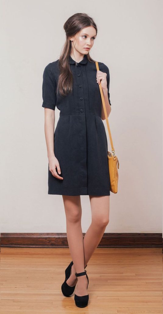 Au plus fort de la popularité, les robes de longueur moyenne sont fermées par tous les boutons. Les chaussures peuvent être n'importe quoi - talons aiguilles, chaussures de ballet ou baskets. Tout dépend de la situation spécifique.