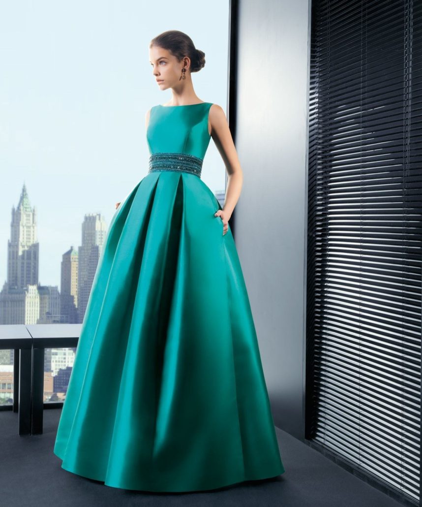 Les nuances des robes peuvent être très différentes: des pastels délicats aux couleurs vives. Pour les natures romantiques, des robes longues avec une taille haute et un ourlet évasé sont présentées. L'option de la salle de bal classique peut être considéré comme le style Empire.