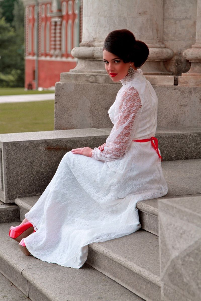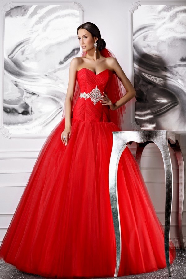Robe de mariée avec ceinture rouge: le design original d'un produit de mariage