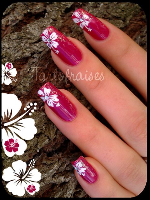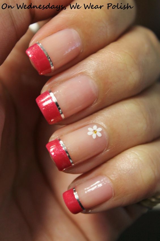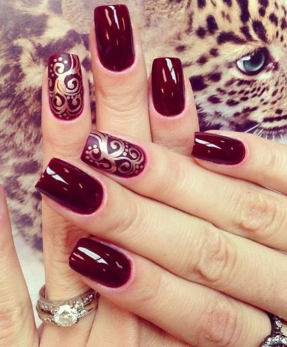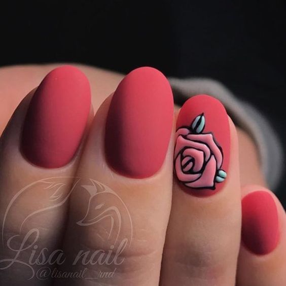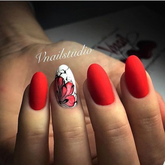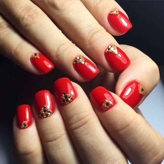 La base rouge est considérée comme idéale pour lui appliquer divers motifs. Même si vous n’avez pas le talent pour dessiner, vous pouvez utiliser l’estampage ou des autocollants spéciaux. Les fleurs sont très belles sur un fond rouge.