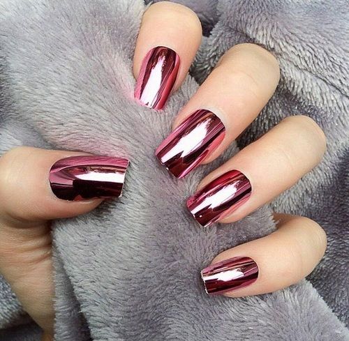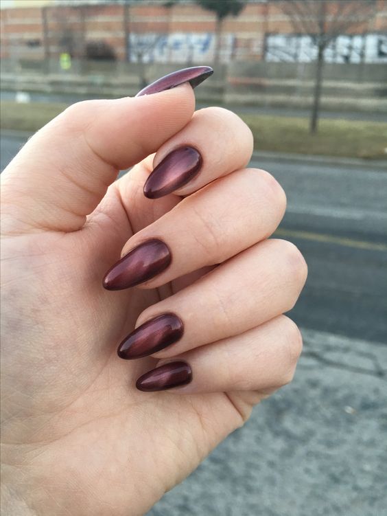 Vous voulez avoir l'air original? Utilisez des vernis magnétiques spéciaux. Une manucure de style œil de chat rouge associée à des strass sera une excellente idée de événement festif.