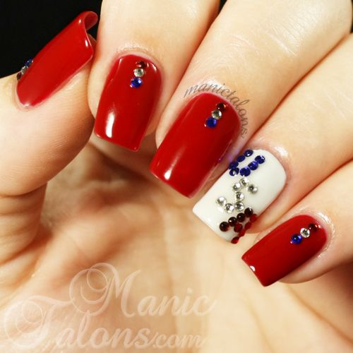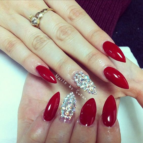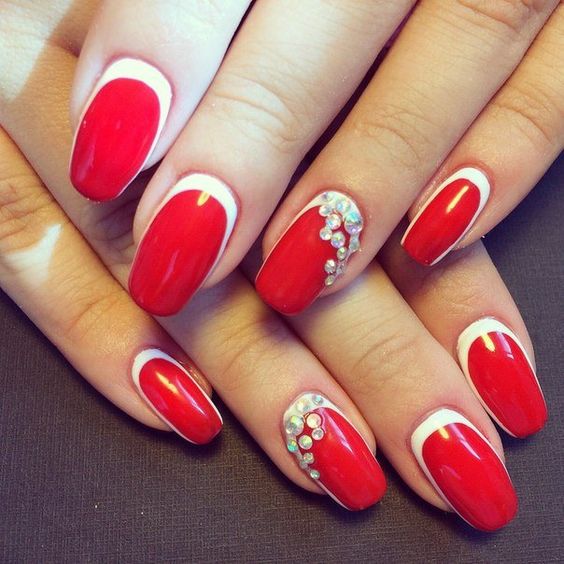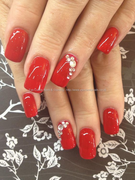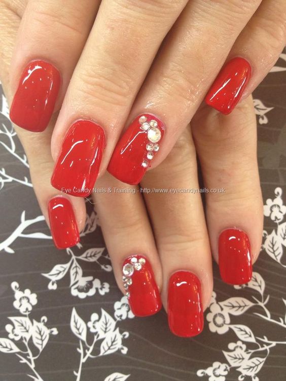 Manucure rouge avec des strass