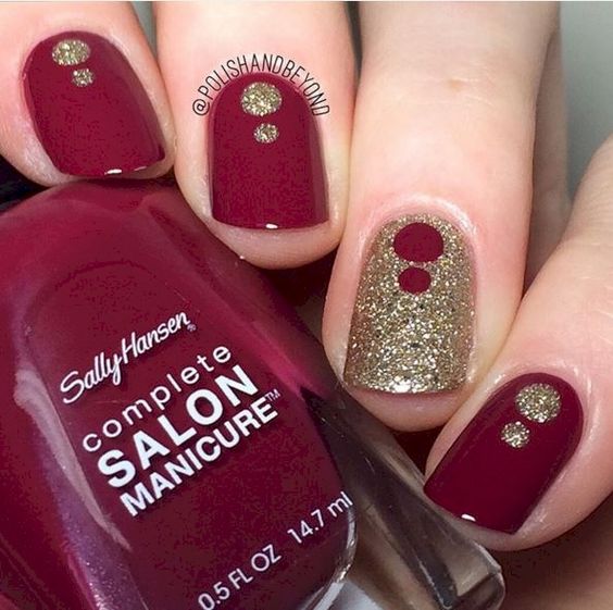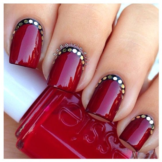 Cette tendance dans la conception des ongles est maintenant au sommet de la popularité.Dans ce cas, la couleur rouge peut être prise comme base ou utilisée pour peindre les puits.