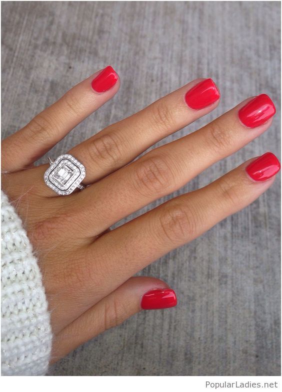 Manucure rouge pour les filles avec les ongles courts est une solution classique, puisque visuellement cette couleur peut les allonger. L'avantage d'une telle manucure est qu'elle est parfaite pour tout vêtement.