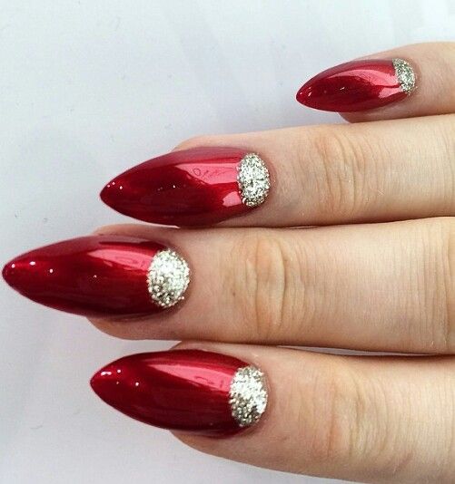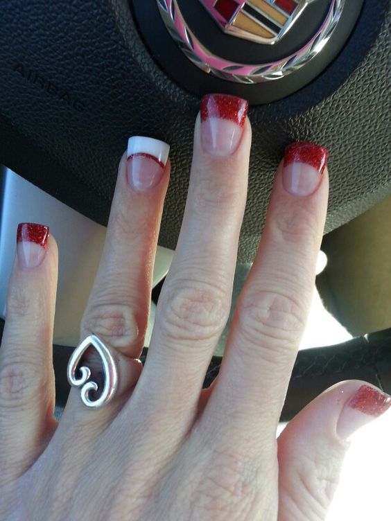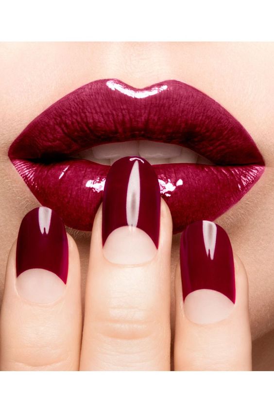 Le vernis rouge peut être utilisé pour créer une manucure française. Dans le même temps, il peut être utilisé à la fois pour recouvrir la plaque à ongles et pour mettre en valeur le bord du clou.