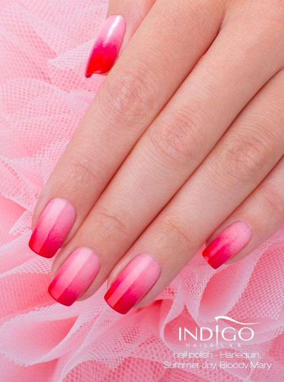 Ombre Manicure, ou comme on l'appelle aussi dégradé, a déjà réussi à tomber amoureux de nombreuses filles. Il est basé sur une transition en douceur entre les couleurs. La longueur des ongles dans ce cas n’est pas fondamentale, mais elle a tout de même l’air plus agréable pour les plus courtes.