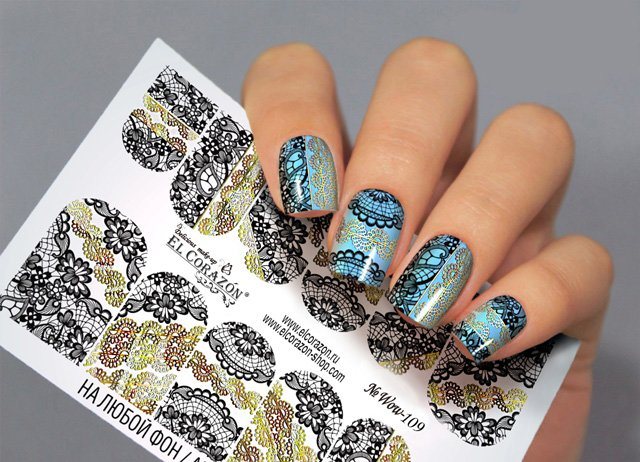 Si l'option présentée vous semble trop compliquée, nous vous recommandons d'essayer de réaliser une telle conception à l'aide d'autocollants. C'est parfait pour les débutants dans le domaine du nail art. Pour ce faire, préparez un vernis de couleur et transparent, ainsi que des autocollants en dentelle.