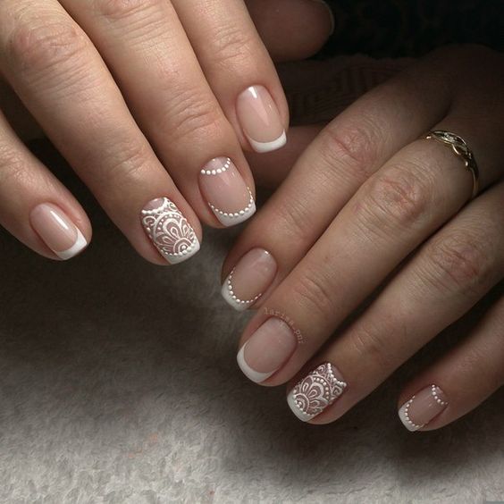 Par exemple, la manucure française est un classique qui sera toujours pertinent. Il a fière allure dans n'importe quelle palette de couleurs. En plus, ça va bien avec le design ajouré. Une telle manucure a l’air très douce, féminine et festive à la fois. Par conséquent, la dentelle française a longtemps été un favori de nombreuses épouses.