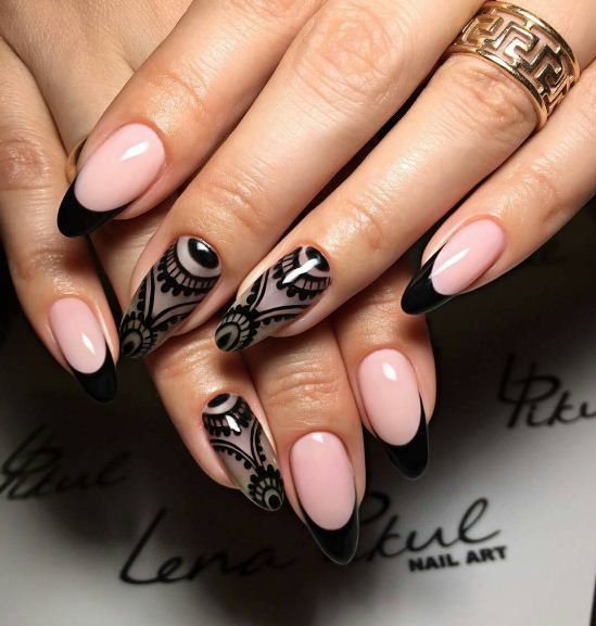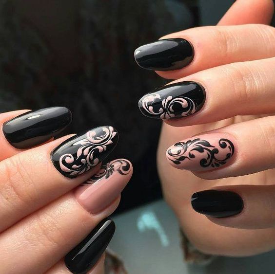 - vernis à ongles noirs et beiges;