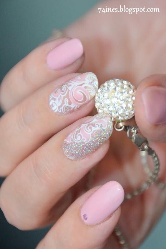Séparément, il est à noter que la dentelle est une conception autonome. Par conséquent, il est très esthétique et utilisé sur tous les ongles. De plus, la manucure ajourée va bien avec d'autres dessins. Par exemple, imprimé floral, bande, pois. En ce qui concerne le décor supplémentaire, vous pouvez utiliser en toute sécurité des strass, des perles, du kamifubuki, des paillettes, ainsi qu'une poudre de texture spéciale. La chose principale - tout devrait être dans la modération. Sinon, la conception semblera ridicule.