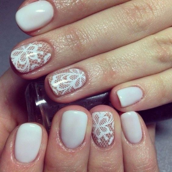 Vous avez sûrement remarqué que le même design est complètement différent en fonction de la longueur des ongles. Cela n’a rien d’étonnant, par conséquent, dans les salons, les assistants aident toujours à choisir le modèle qui convient le mieux. Quant au motif de dentelle, il est parfait même pour les ongles courts. Cette option sera une excellente solution pour la vie quotidienne.