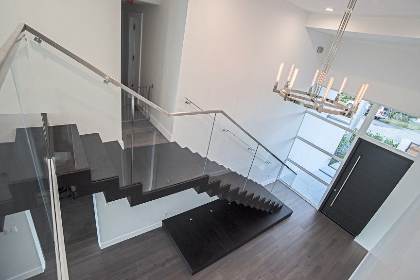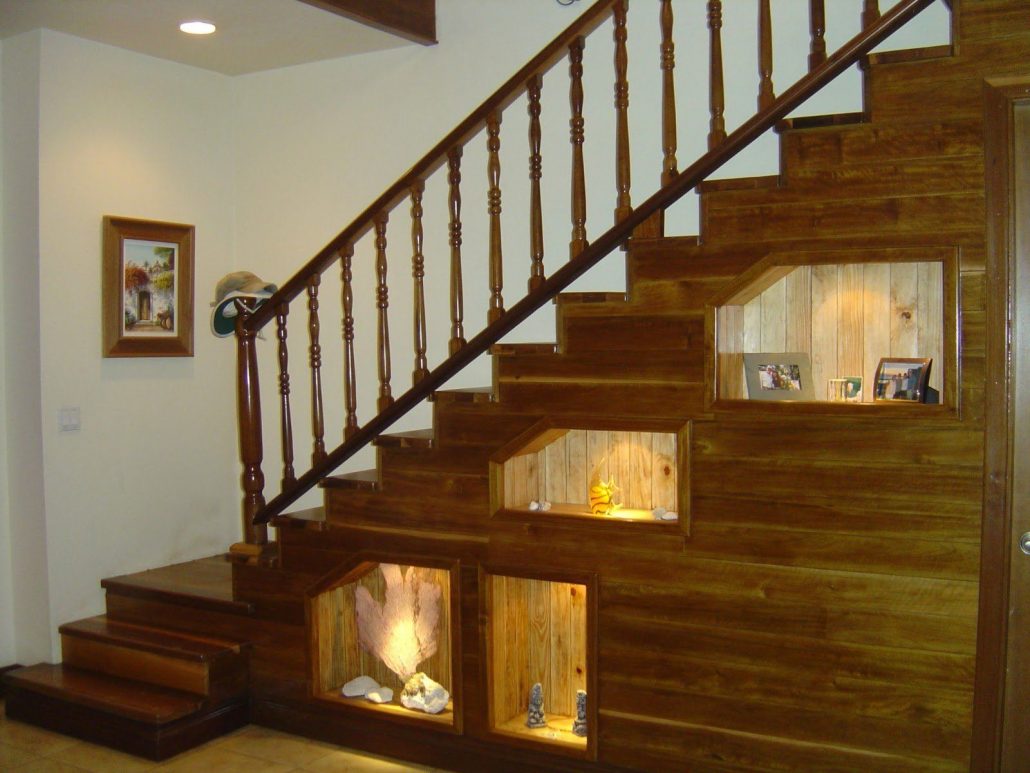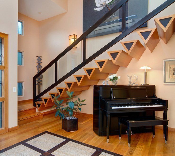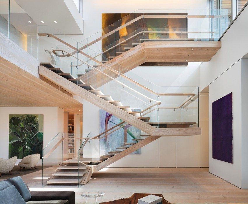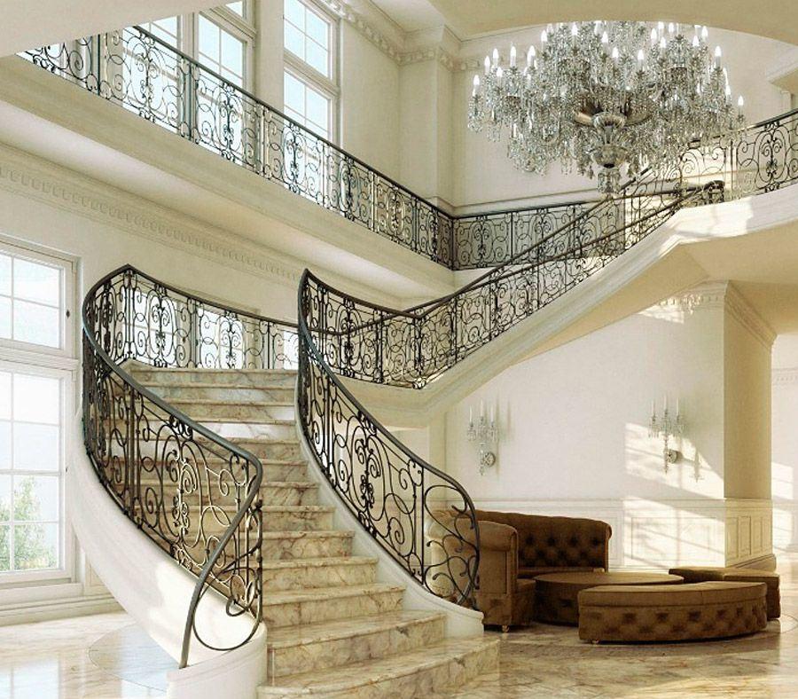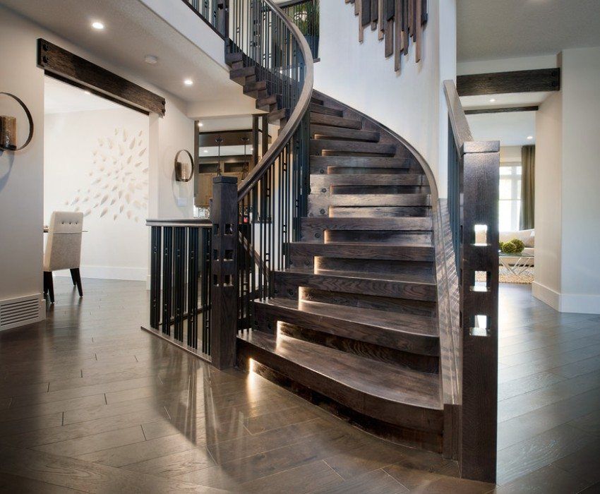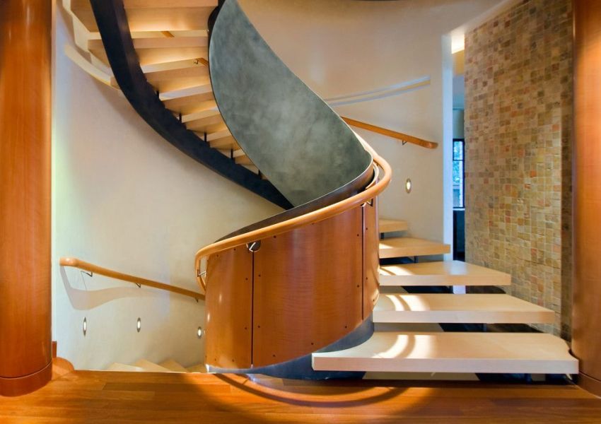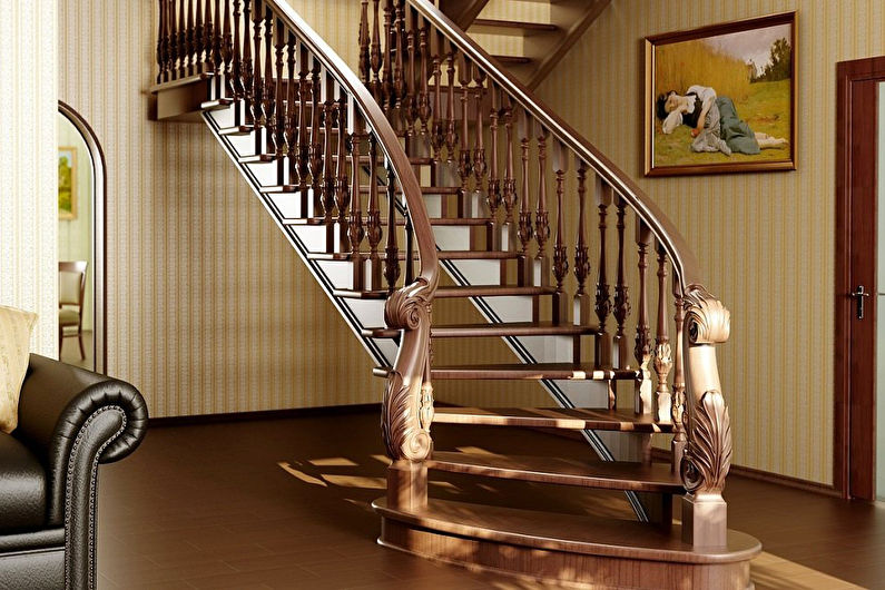 Dans ce cas, la préférence est donnée aux surfaces lisses, aux lignes, aux formes géométriques. Le plus important, c’est que l’escalier à l’intérieur ait l’air favorable et que le type de design ne soit pas important.