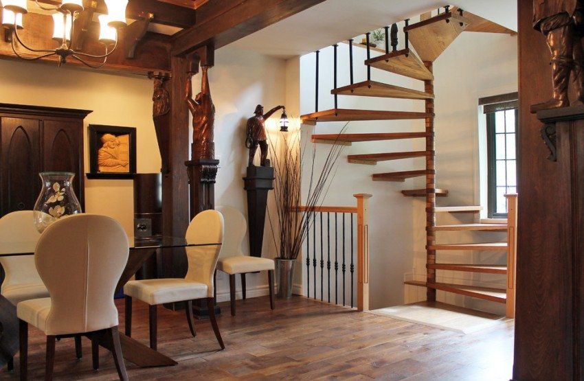 Pour les styles classiques et modernes, un escalier en colimaçon est une excellente option. Un trait distinctif est sa forme en spirale.