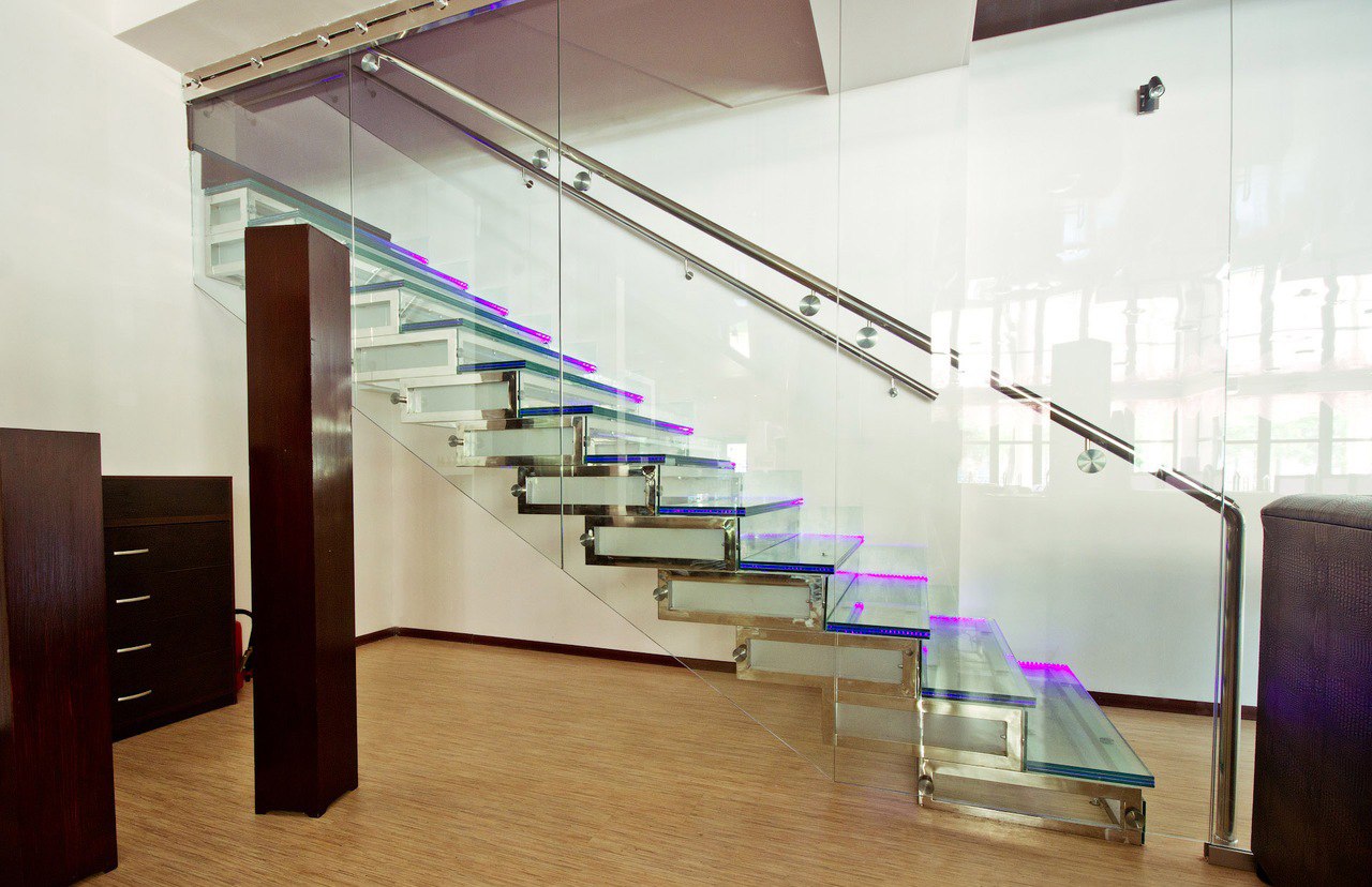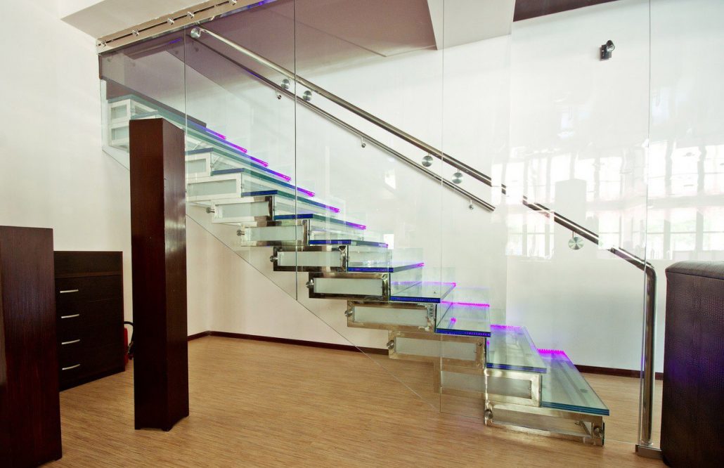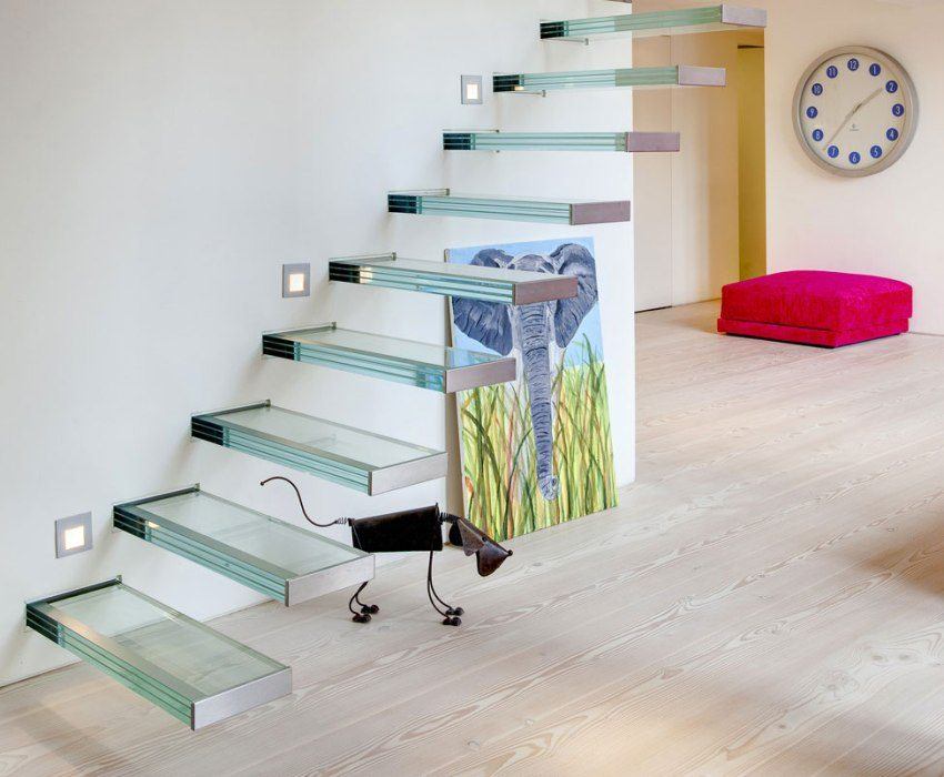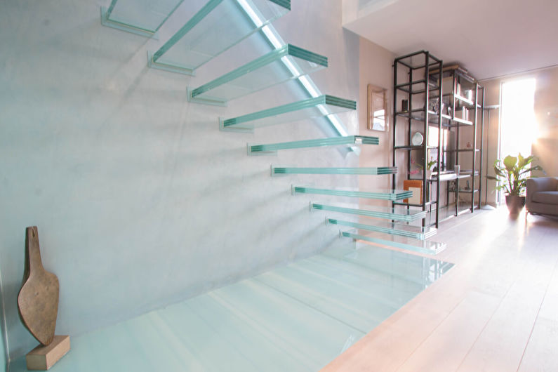 Avec un coup puissant, une telle échelle peut être endommagée. Au fil du temps, des rayures apparaissent à la surface. Mais en ce qui concerne le design, cette option n'a pas de concurrents. En combinaison avec le métal, l'escalier en verre est harmonieux et fiable.