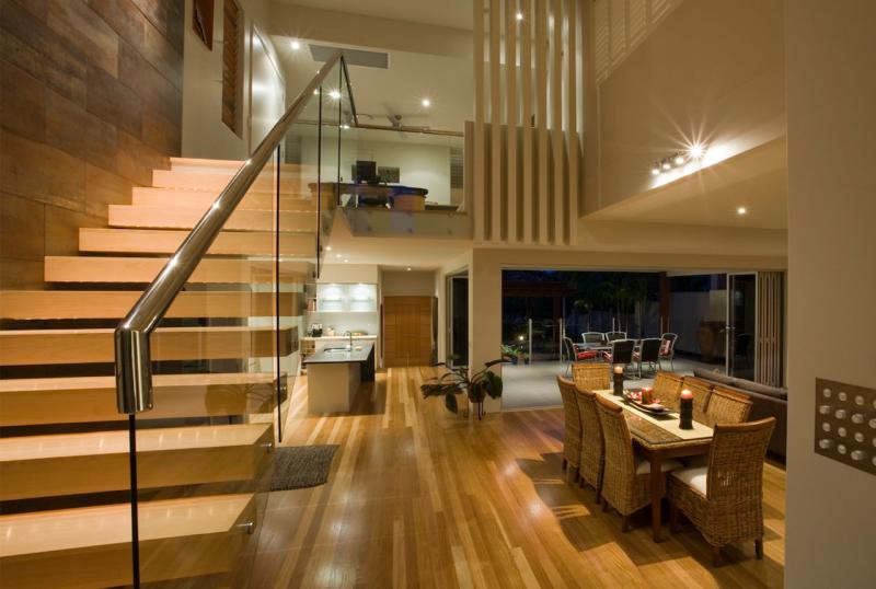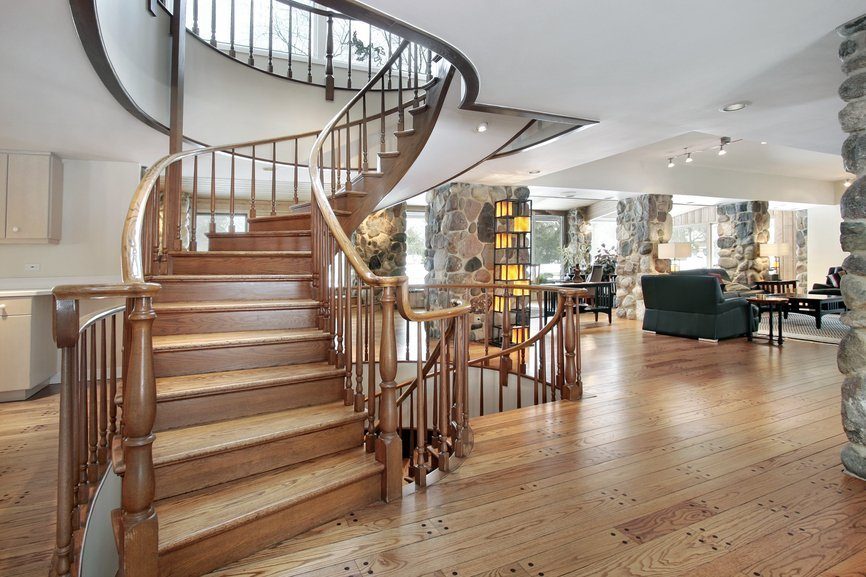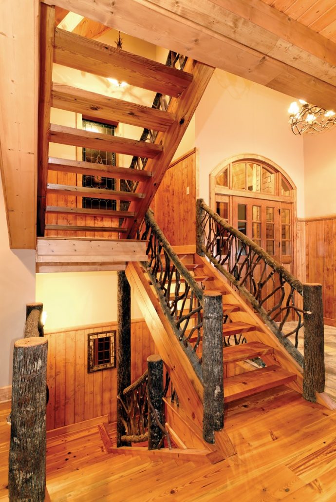 En fonction de la hauteur des plafonds, de la taille de la pièce et de la disposition, l'installation des escaliers dépend. En tout cas, il s’agit d’un processus individuel. Dans les bâtiments spacieux, le hall d'entrée est l'endroit le plus populaire pour installer des escaliers au deuxième étage. Cela ouvre la possibilité, sans se promener dans la maison, d'entrer dans n'importe quelle pièce.
