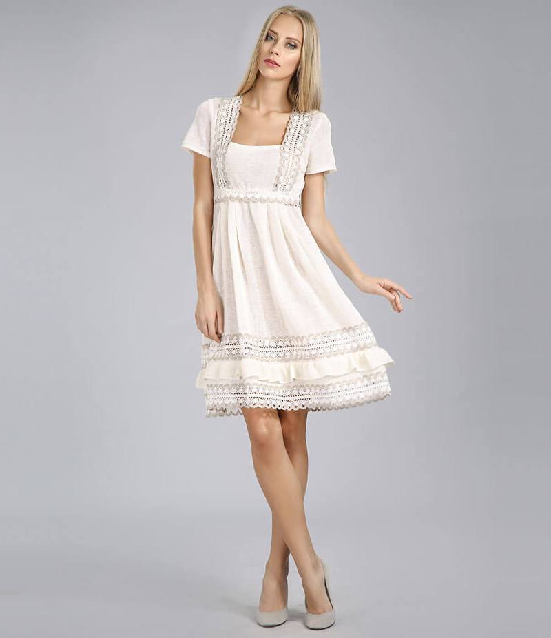 Le vrai tissu de lin, même sans impuretés de fibres synthétiques, s’adapte très bien au maintien de la forme de la robe. L'adjonction de fibres synthétiques au lin permet aux designers d'expérimenter des robes en lin de style boho en raison de leur plasticité.De telles robes vont très bien à la silhouette. Si la jupe de la robe en lin a la forme d'un rayon de soleil, des plis magnifiques et magnifiques sont obtenus. Sans aucun doute, un mélange de matières synthétiques pour la période estivale n’est pas une très bonne option, mais ceci est contrebalancé par une conception externe améliorée et une valeur décorative du produit. Les concepteurs ont audacieusement ajouté des assemblages, des volants, des volants, des manches volumineuses aux robes d'été en tissu mélangé de lin dans un style boho. En raison des caractéristiques du matériau, les robes modernes ne changent pas de forme après le lavage et restent longtemps dans leur forme d'origine.