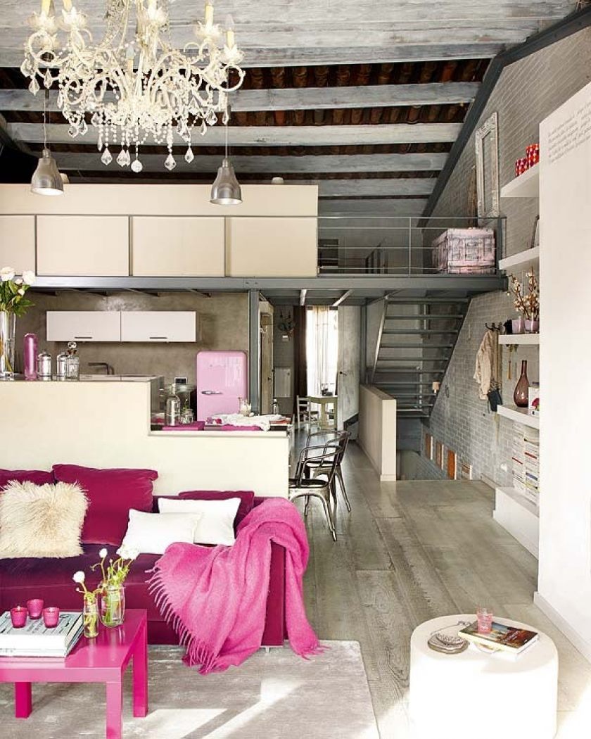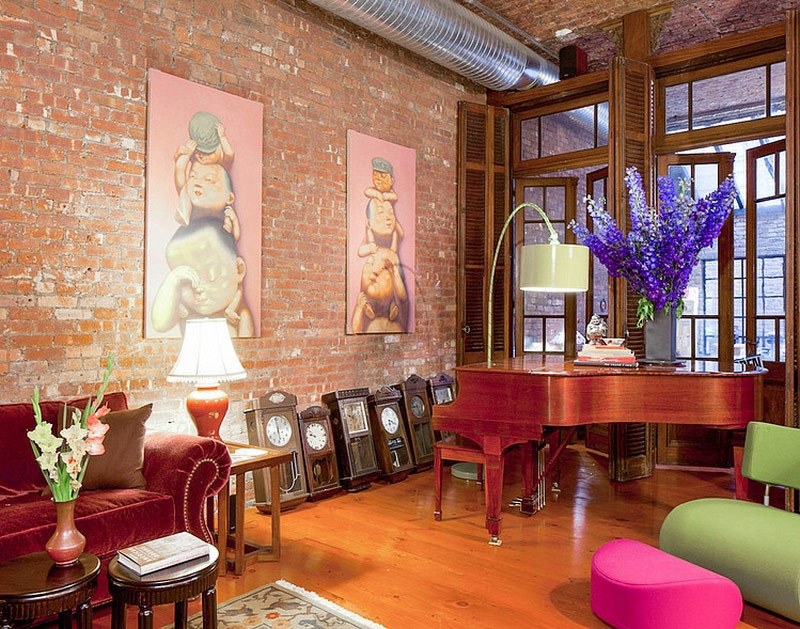 - Loft Bohémien. Toutes les caractéristiques de la salle de production sont préservées, mais tous les meubles et accessoires ont des caractéristiques créatives. Le décor dans ce cas peut être un objet d'art (sculptures, peintures, ikebans).