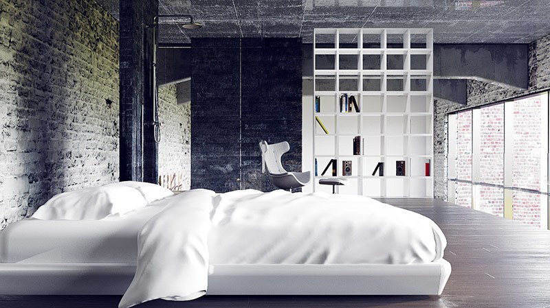 Malgré sa brutalité, une chambre de style loft peut être très confortable. Pour cela, l'essentiel est de bien souligner. Ce ne sera pas difficile à faire, car ce style accepte les expériences.