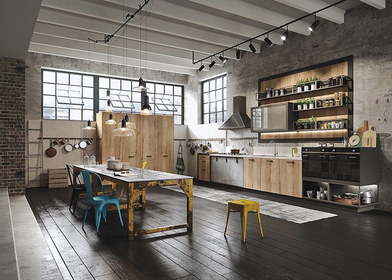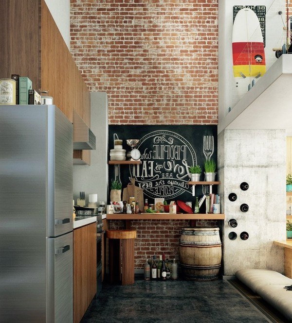 Style loft à l'intérieur de la cuisine