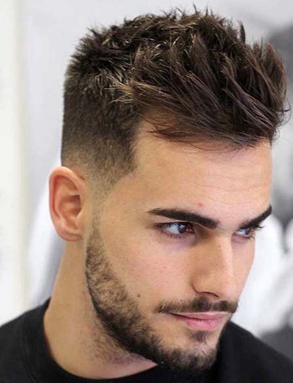 La coupe de cheveux la plus courante chez les hommes aux cheveux courts est la frange. Le style facile avec du gel ou de la pâte réduit considérablement le temps d'un homme axé sur les affaires et déterminé, et vous êtes un bel homme de la couverture d'un magazine auquel personne ne peut résister.