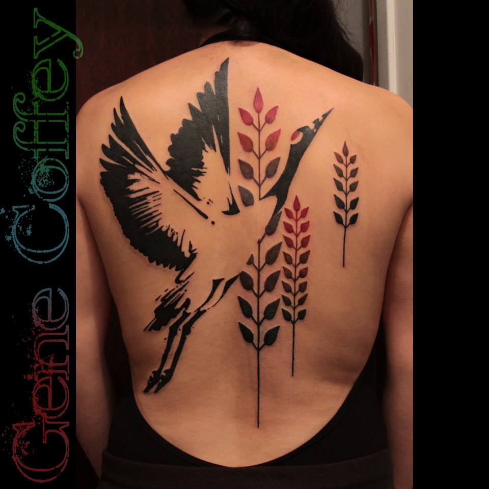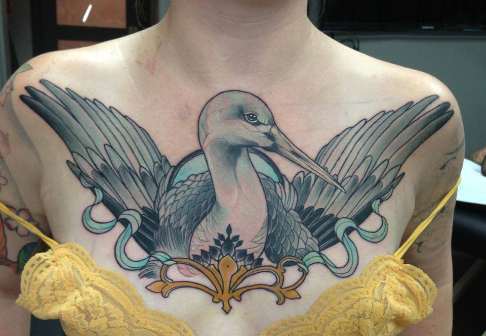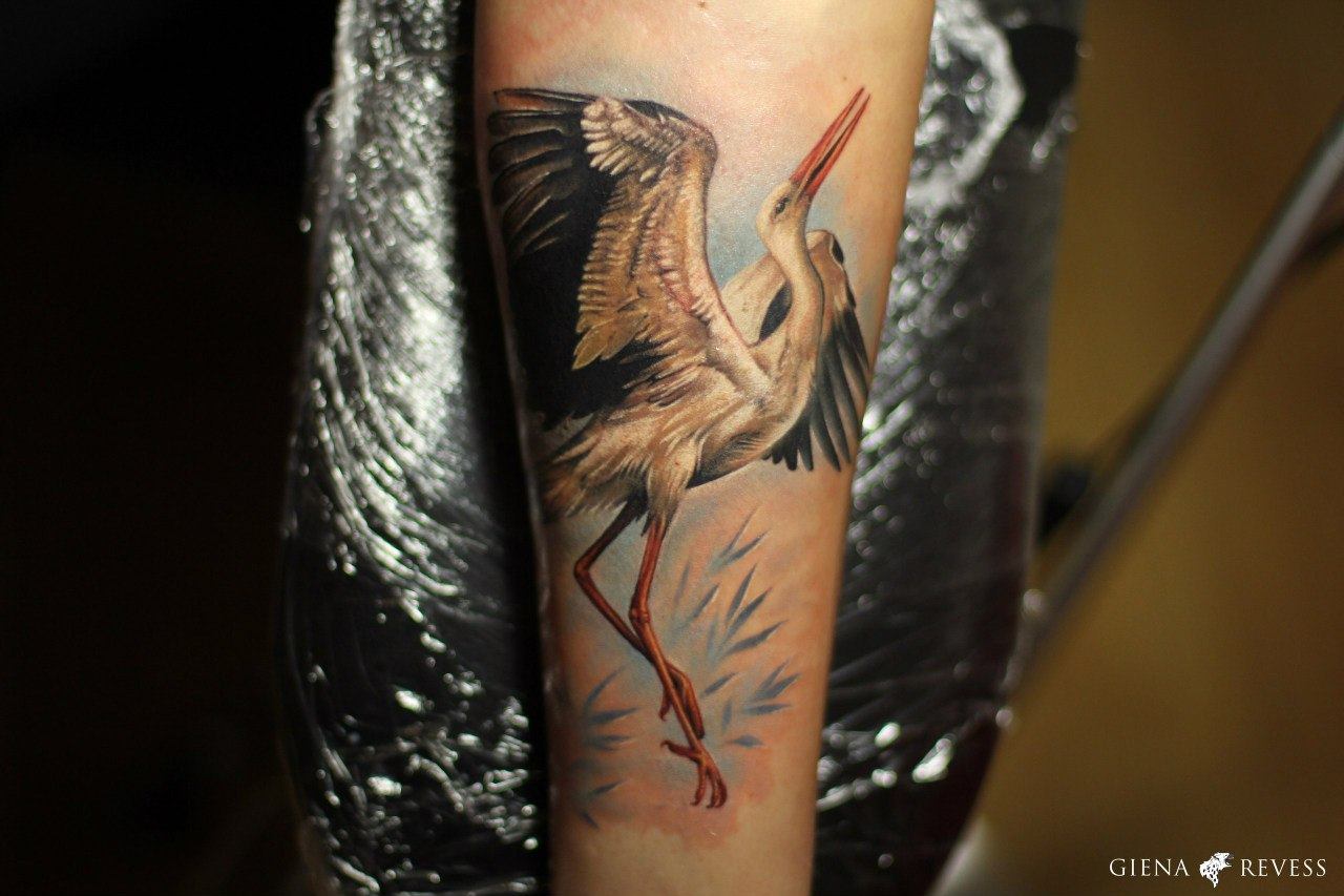 Tatouage de cigogne: de belles options sur la photo