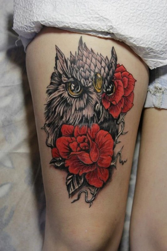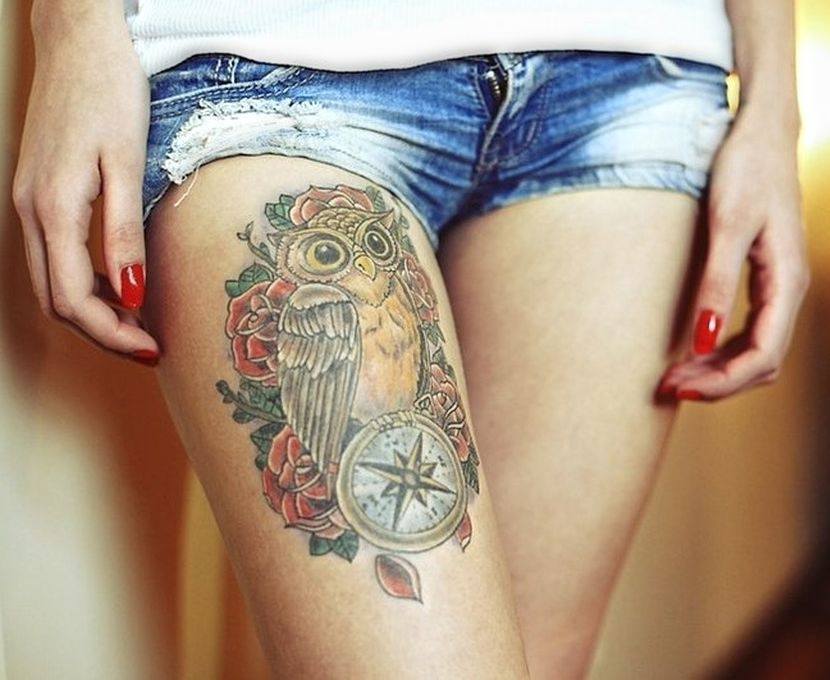 Il y a quelques centaines d'années, un hibou était une force sombre et sinistre associée à la magie et à l'autre monde. Aujourd'hui, l'opinion à ce sujet a changé.Les gens croient que l'image d'un hibou signifie solitude, intelligence développée et calme. Nous concluons que ce tatouage est idéal pour les personnes pacifiées et sages qui ne sont pas pressées de prendre des décisions téméraires. Un dessin avec un hibou peut être placé sur n'importe quelle partie du corps, il n'y a pas de canons à cet égard. Mais souvent, il est appliqué sur les mains ou les pieds.