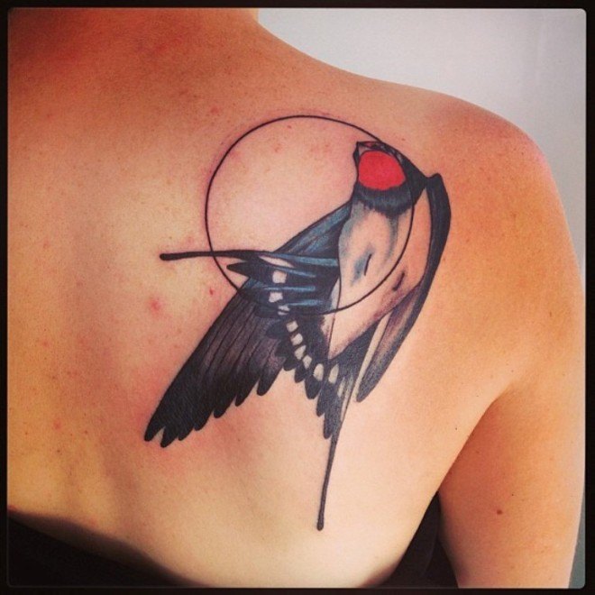 Auparavant, l'hirondelle symbolisait l'amulette, protection à l'abri de la maison, particulièrement appréciée des marins. La modernité a effacé ces frontières et élargi le sens de ce tatouage. Une hirondelle, c'est le bonheur dans la maison, la liberté, la fiabilité, la jeunesse, une bonne fortune. Il est recommandé de développer votre propre dessin pour mettre en évidence votre "hirondelle" sur le fond général du même type de tatouage. Alors seulement, vous saurez que votre dessin signifiera exactement ce que vous vouliez y voir.