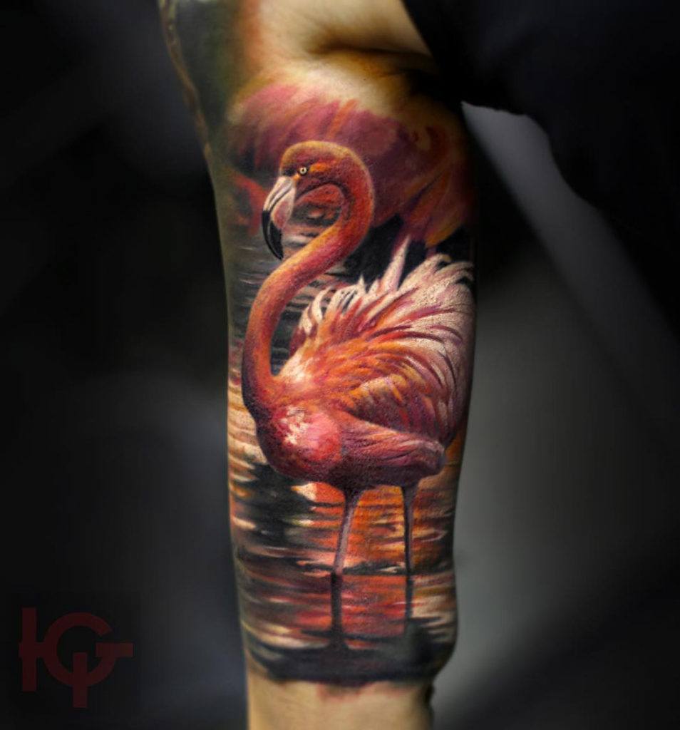 Il n'y a pas si longtemps, les flamants roses commençaient à être demandés par la moitié féminine de l'humanité. Et ce n’est pas surprenant, car les flamants roses sont un oiseau brillant et attrayant. Maintenant, le motif flamant rose est utilisé pour imprimer des vêtements, créer divers accessoires et autres bijoux qui ressemblent à cet oiseau étonnant. Les flamants roses sont avant tout la protection de la nature. Les personnes travaillant dans ce domaine se feront sûrement tatouer un oiseau rose. En outre, cet oiseau est activement rempli de rêveurs, de personnes positives et de romantiques.