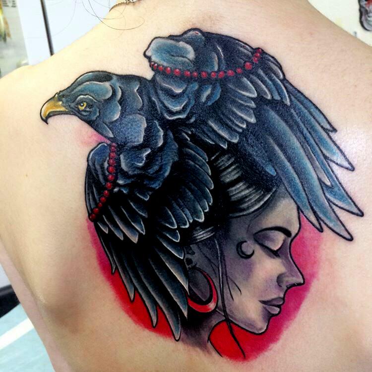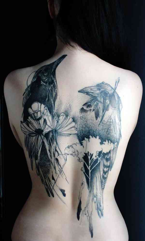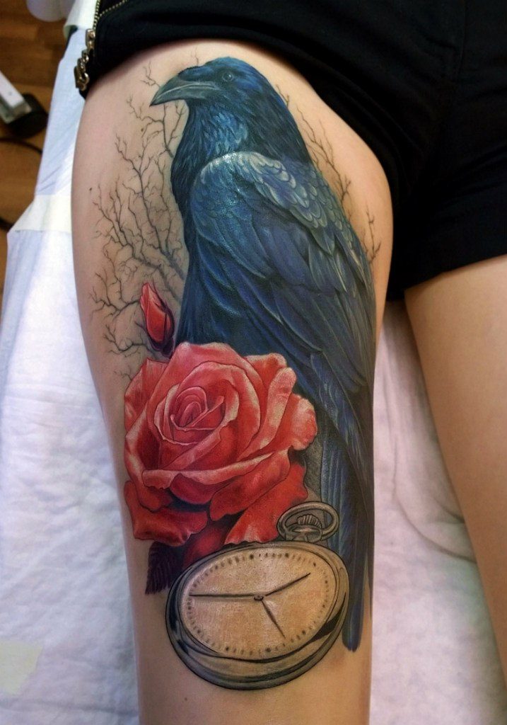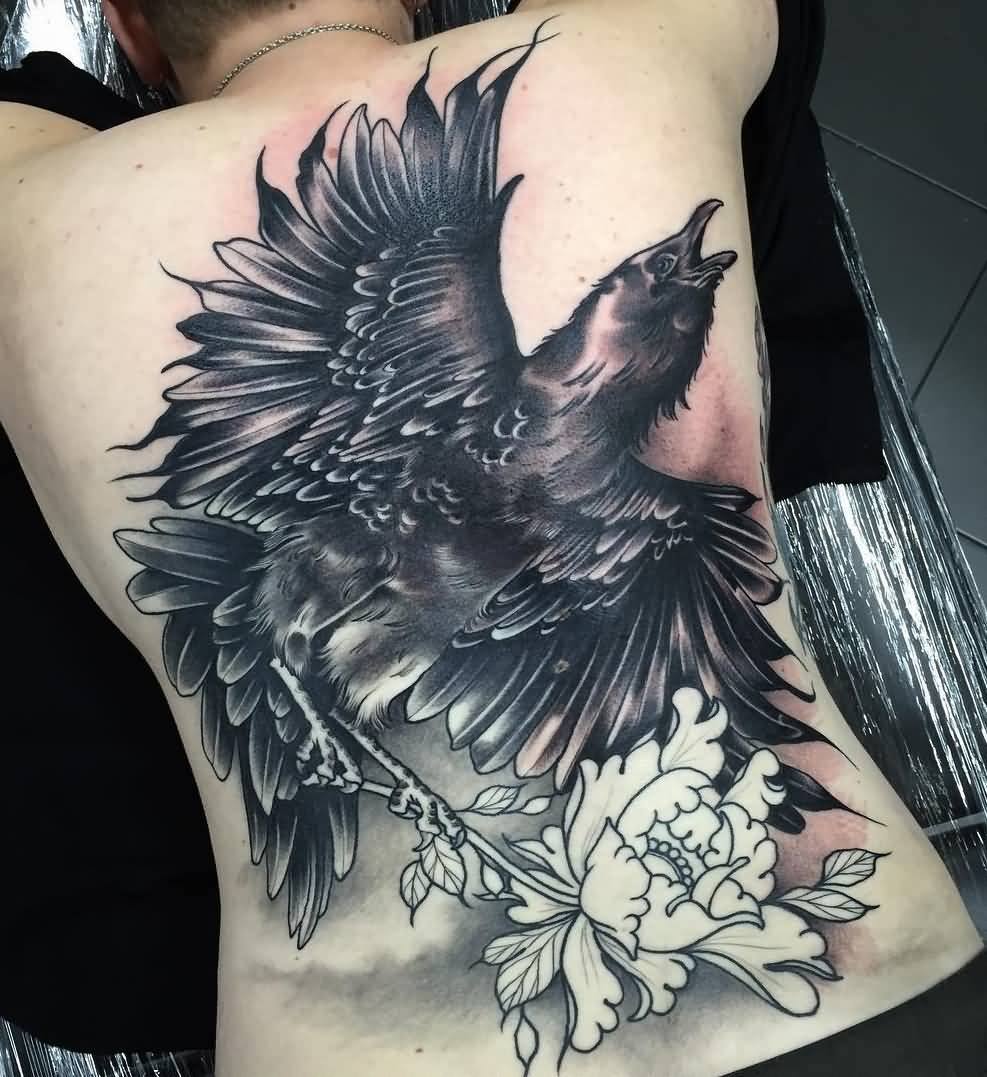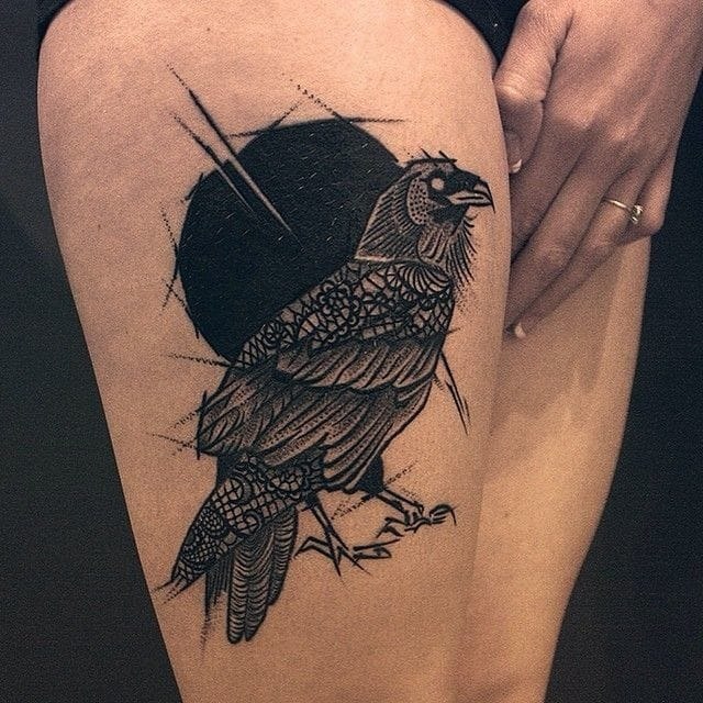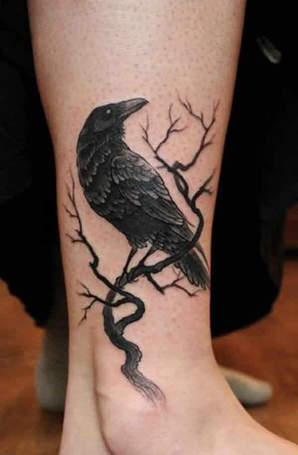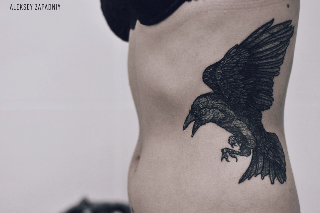 Corbeau noir: signification de tatouages inhabituels avec un oiseau