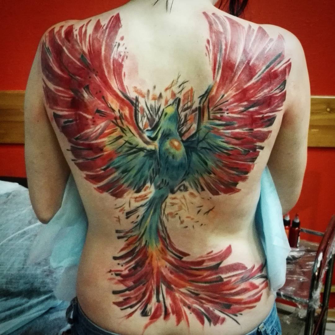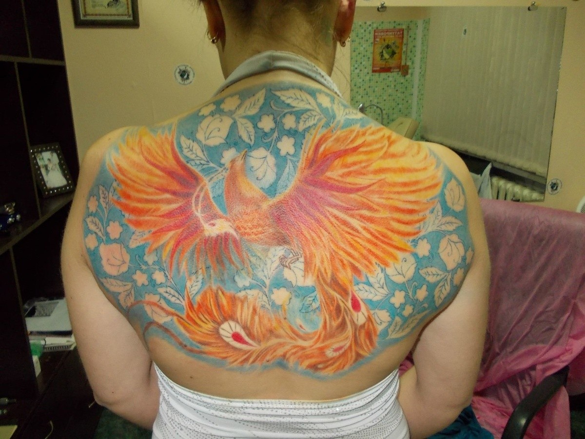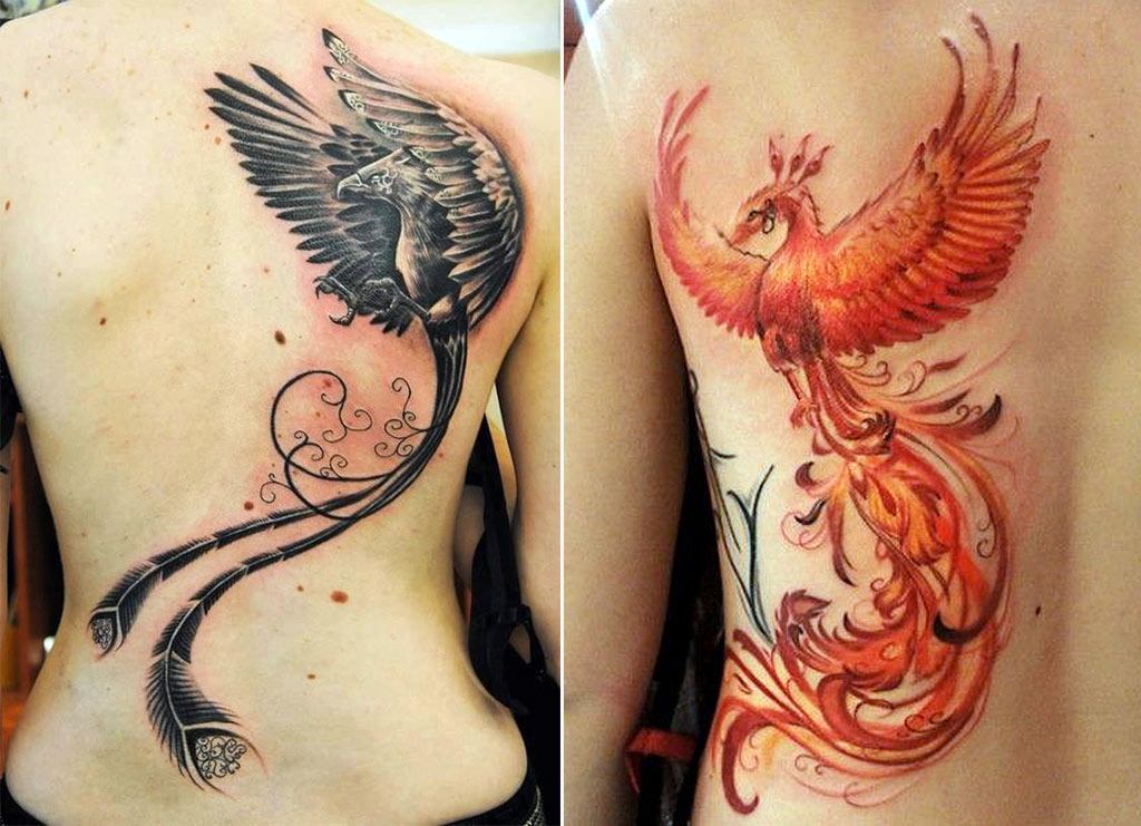 L'oiseau de feu fabuleux sert de talisman contre le mauvais et le négatif. Il est choisi comme tatouage pour résister aux épreuves de la vie, quand il lui semble que les événements qui se déroulent en lui sont injustes, pour surmonter les insurmontables «barrières du karma», pour renforcer l’esprit humain. Souvent, les deux sexes préfèrent cet oiseau. Il est identifié avec le mythique oiseau phénix, car il est logique de renaître de ses cendres et mis à jour. En règle générale, un tel tatouage est choisi par des personnes sages qui comprennent clairement que tout dans cette vie est cyclique, il existe un cycle de «vie» et de «mort».