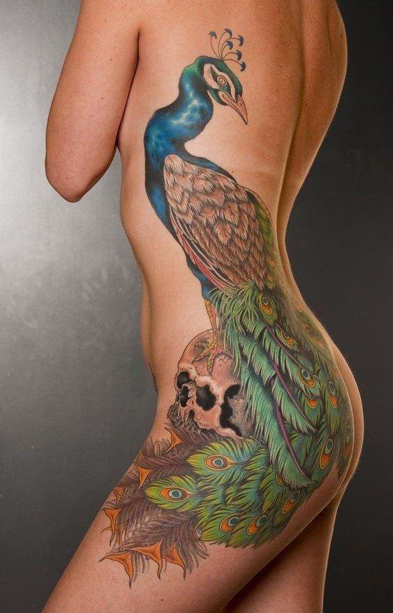 Noble, les beaux oiseaux sont toujours à l'honneur, causant l'étonnement. Les experts en peinture corporelle recommandent vivement de faire des tatouages de grande taille en utilisant des couleurs vives, afin qu'ils aient toujours l'air volumineux et luxueux. Qu'est-ce que le paon signifie? Un paon est l'immortalité, la longévité, la richesse. Une telle image convient aux filles confiantes qui ne craignent pas les difficultés de la vie et sont prêtes à atteindre leur objectif, quoi qu’il en soit.