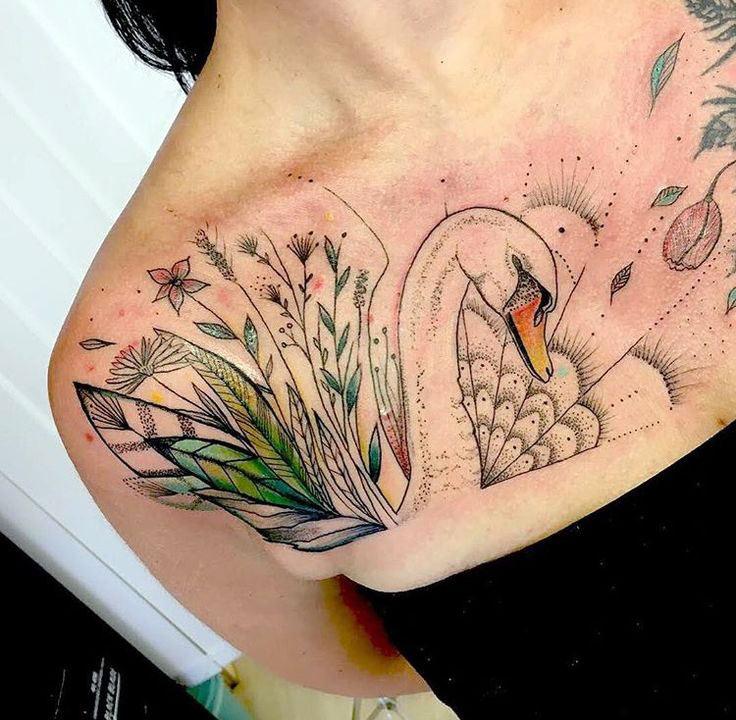 Pureté, amour et fidélité symbolisent le cygne. Les dessins avec cet oiseau sont très demandés par les femmes et les couples amoureux. Après avoir fait un tatouage avec l'image d'un cygne, les amants montrent leur loyauté et leur amour l'un pour l'autre. Les personnes qui font leur choix en faveur du cygne attachent une grande importance à leur famille et à leurs liens en général. Ce tatouage peut être présenté en couleur et en noir et blanc. C’est très à la mode de décorer un tatouage de cygne avec des fleurs, des cœurs et de la verdure.
